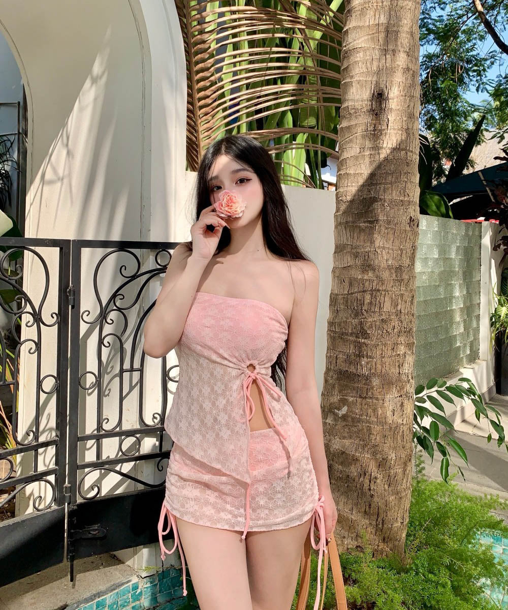 水着ビキニベアトップレースチュール花柄温泉ビーチ海モノキニ非対称おしゃれ旅行 WQ7-YQ-HH3ABSNLL