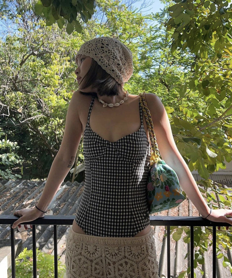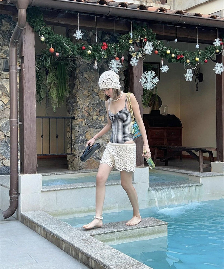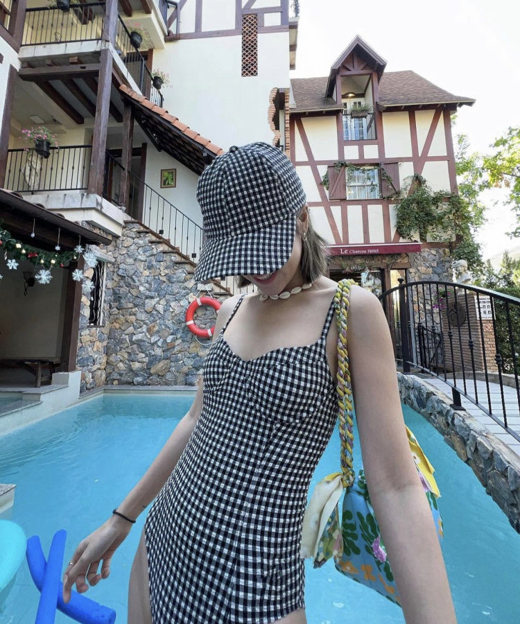 水着 モノキニ 温泉 着痩せ おしゃれ セクシー チェック柄 かわいい YH7-DP-A22001
