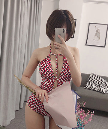 水着 谷間魅せ モノキニ セクシー 着瘦せ ホルターネック XH7-LGXX2699