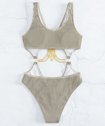水着 チェーン hot girl パレオ付き セクシー ホルターネック 三角ビキニ XH7-OL-DL026