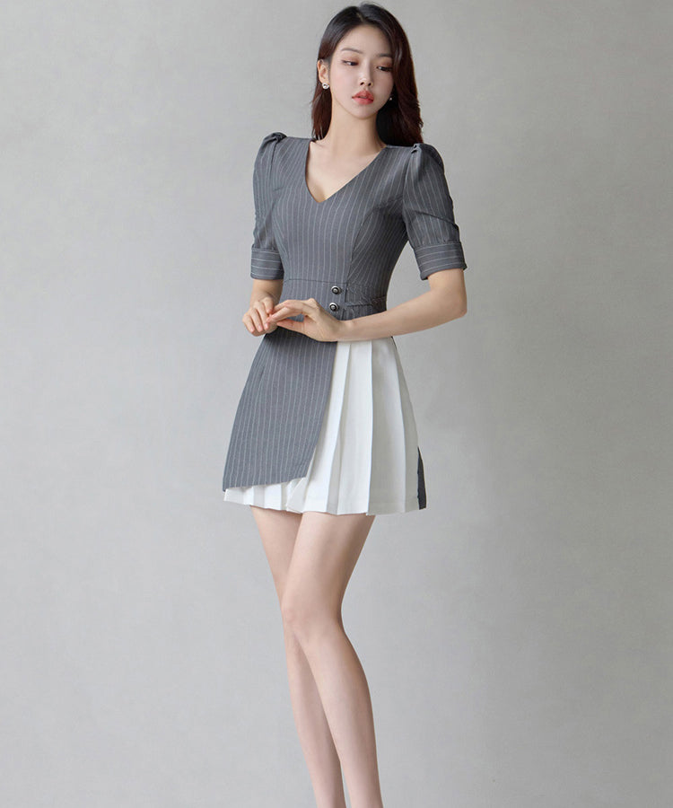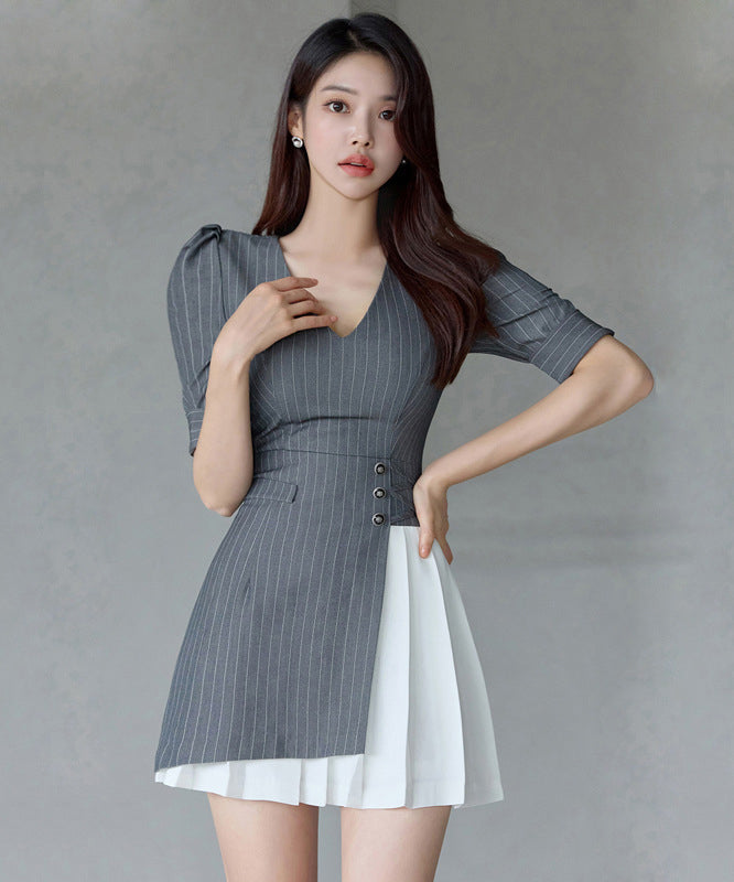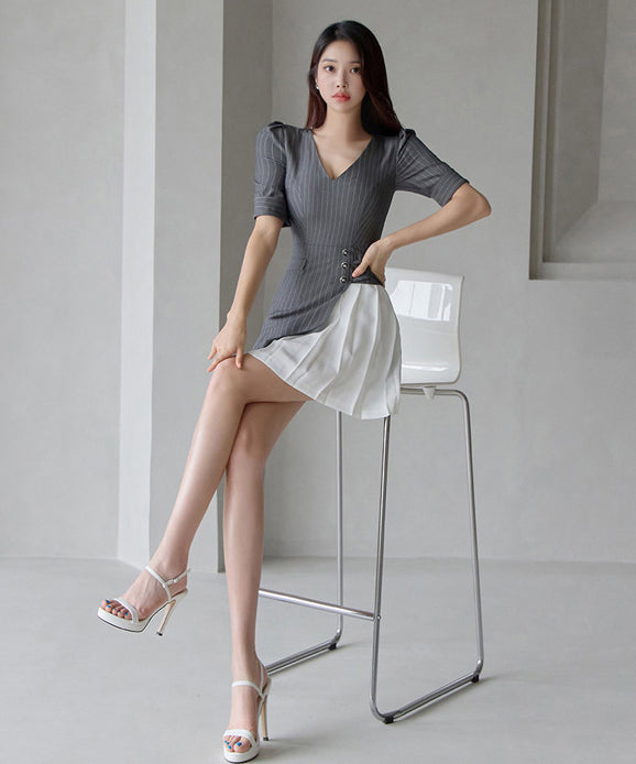 秋新作ミニドレスAラインVネックセクシー韓国っぽ大人可愛いXH2-ZED880984E49