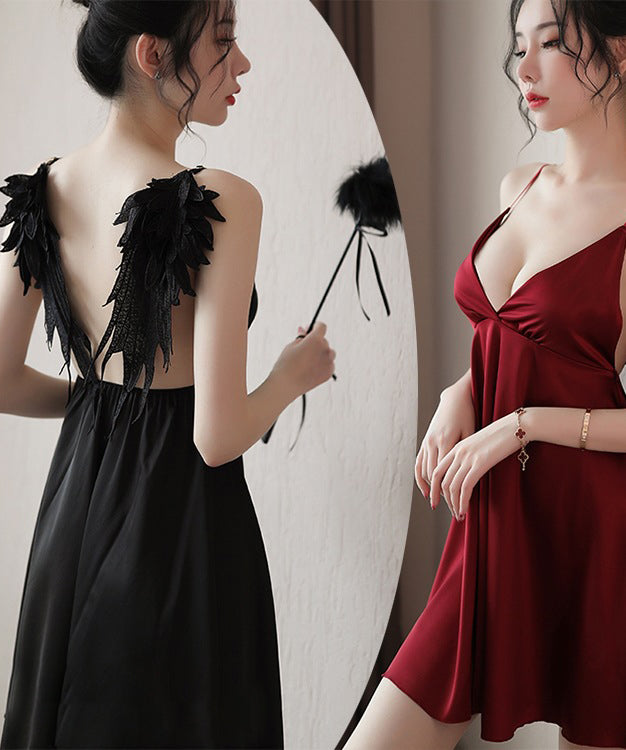 翼 小悪魔 3色 セクシー 谷間魅せ 肌見せ パジャマ スリップドレス MY2033