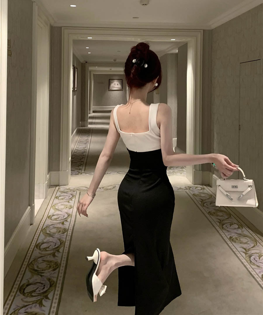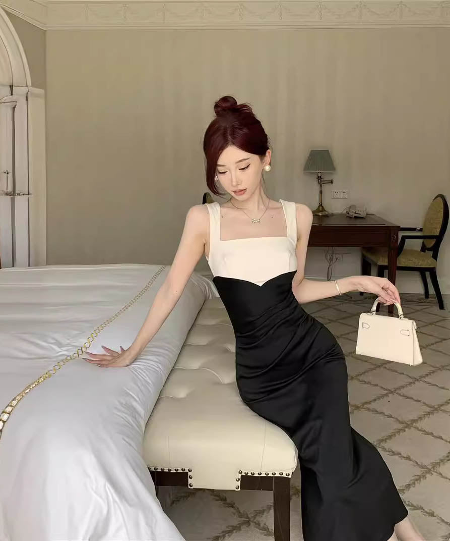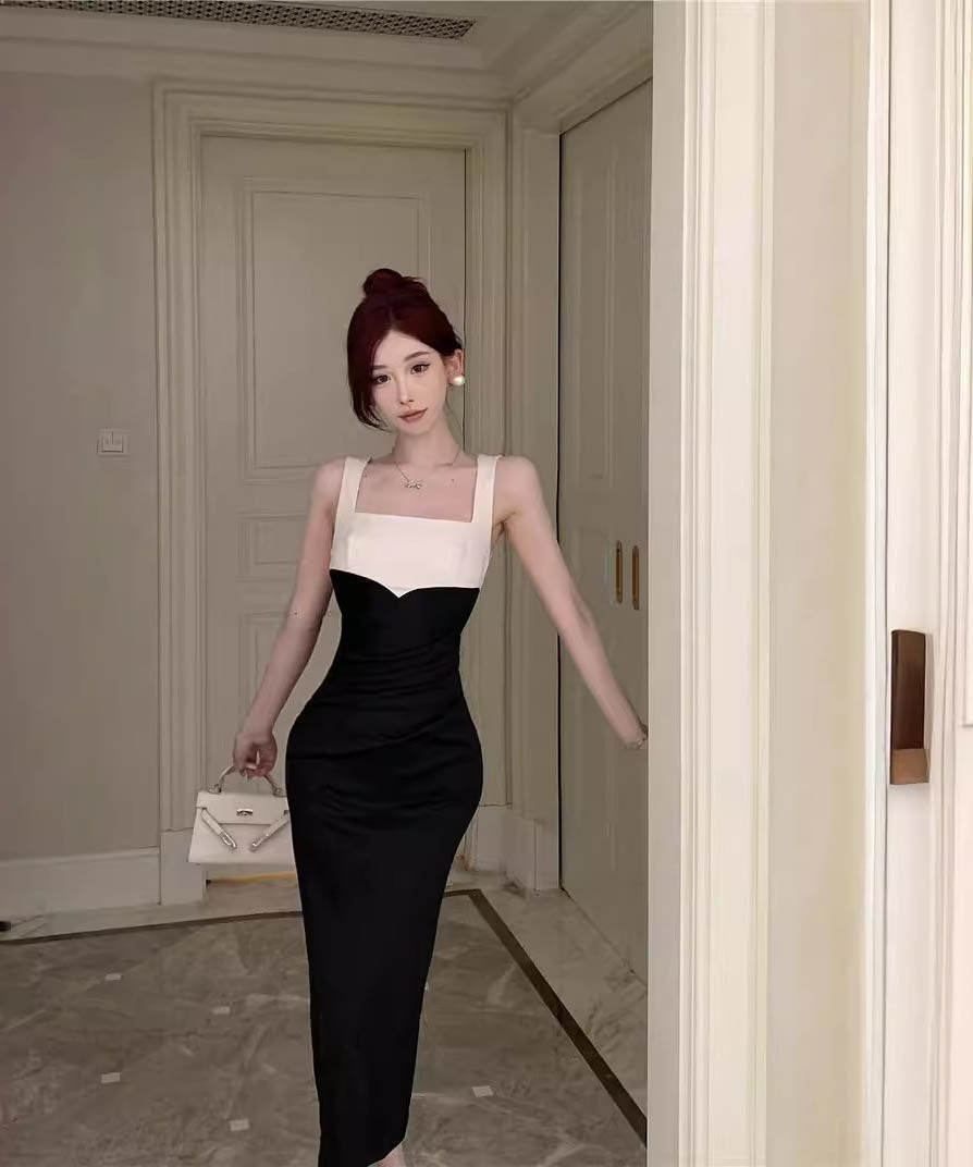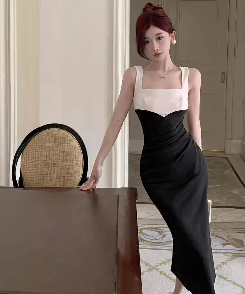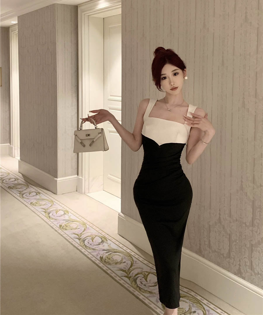 膝丈ドレスエレガントセクシー女子力宴会パーティー気質おしゃれスークエアネック WQ2-DD6463