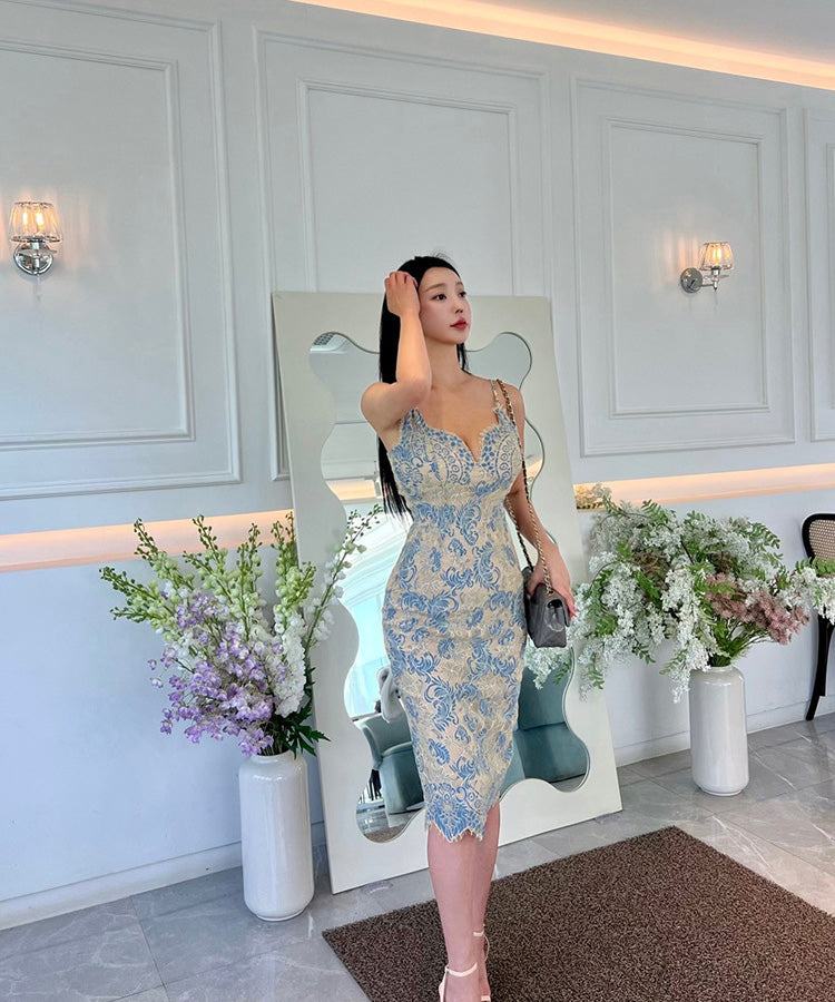 膝丈ドレスエレガントレースセクシー気質タイトドレス谷間見せ韓国っぽおしゃれ WQ2-ZED88794E