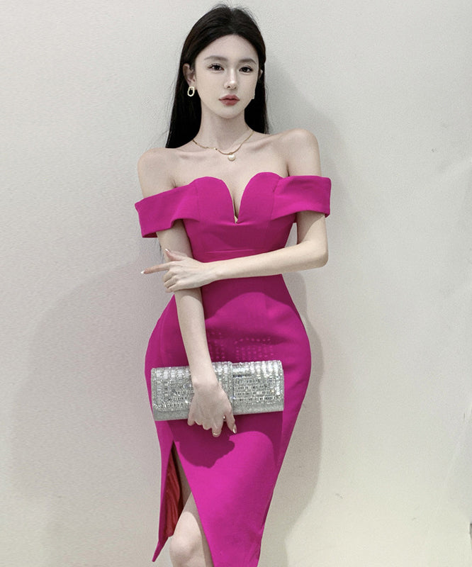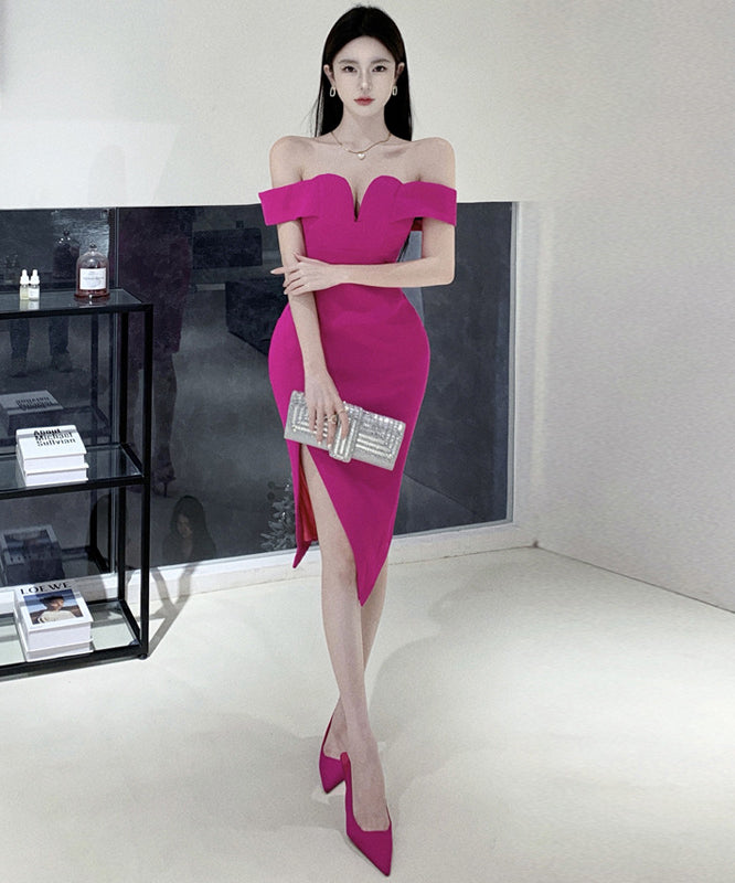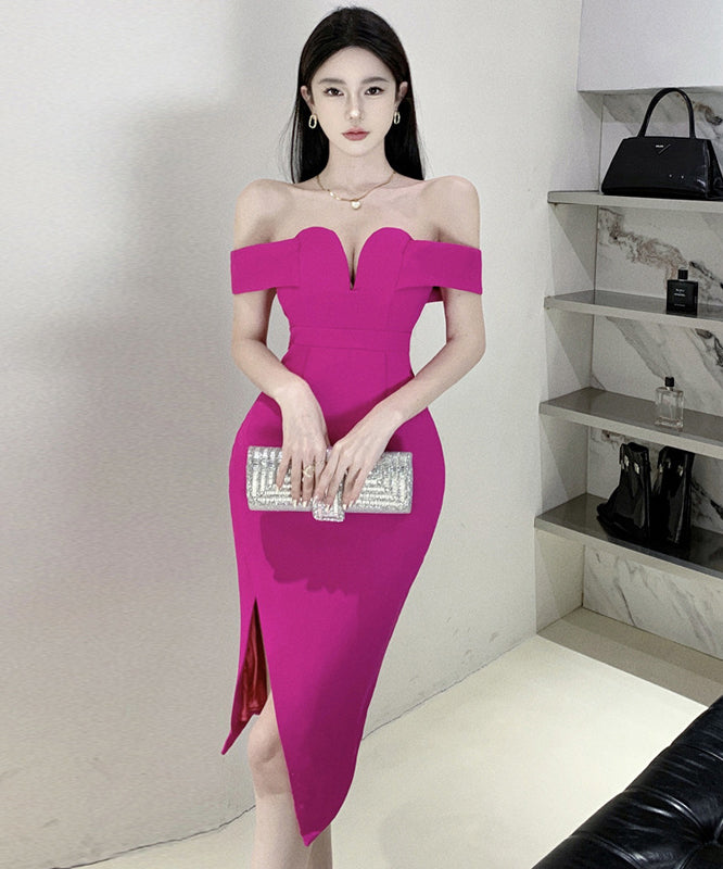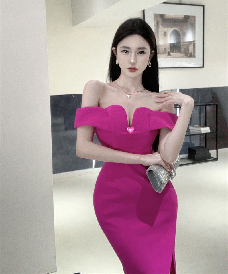 膝丈ドレスセクシーオフショルダー谷間見せエレガントキャバドレスXH2-WDS1857