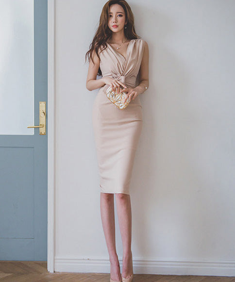 膝丈ドレス キャバドレス おしゃれ セクシー Vネック 谷間見せ 気質 YH2-ZED88358G