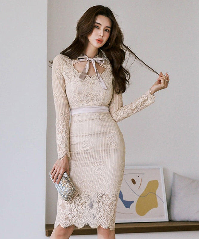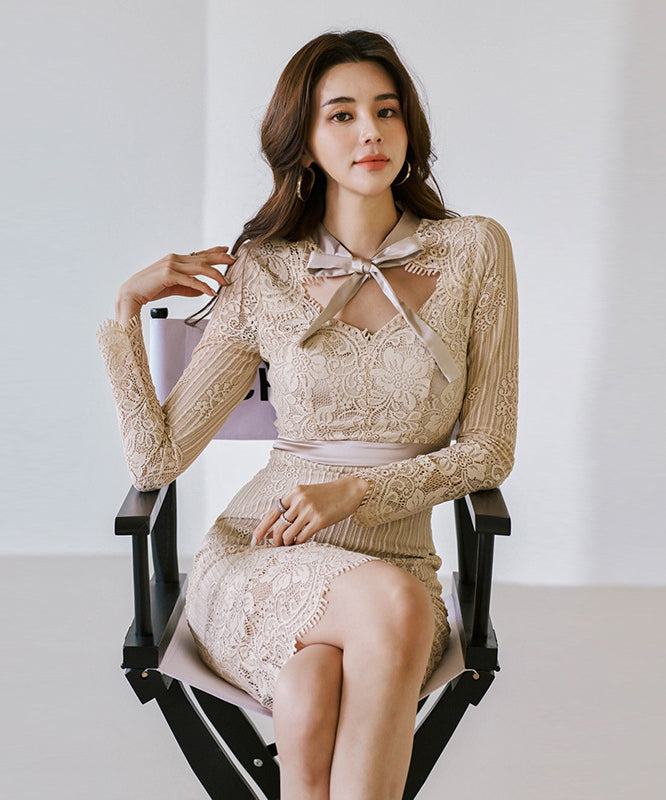 膝丈ドレス キャバドレス エレガント 気質 リボン レース 高級感 XH2-ZED887983A71