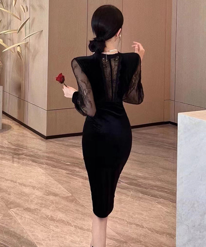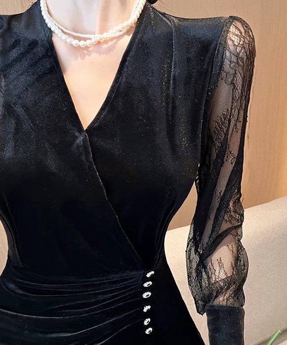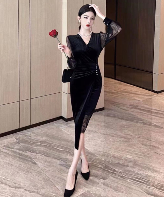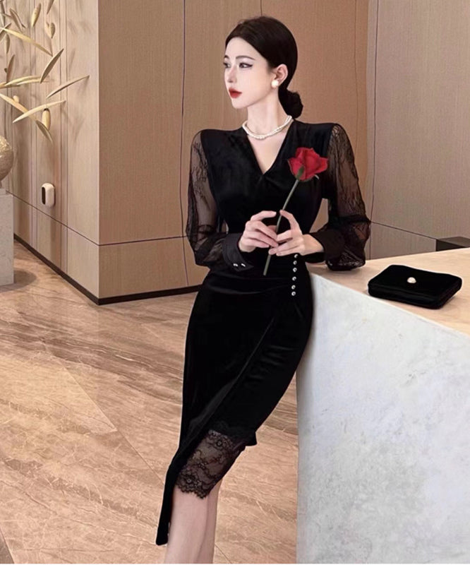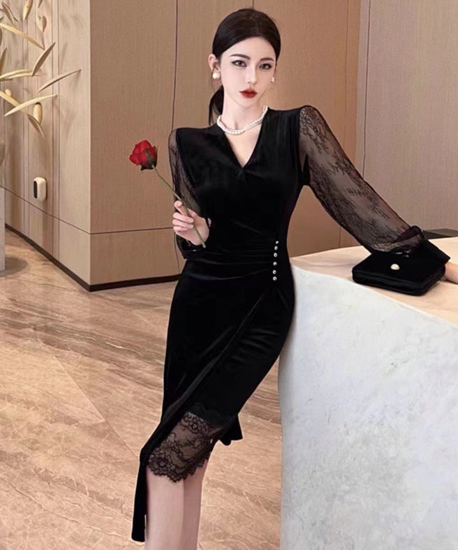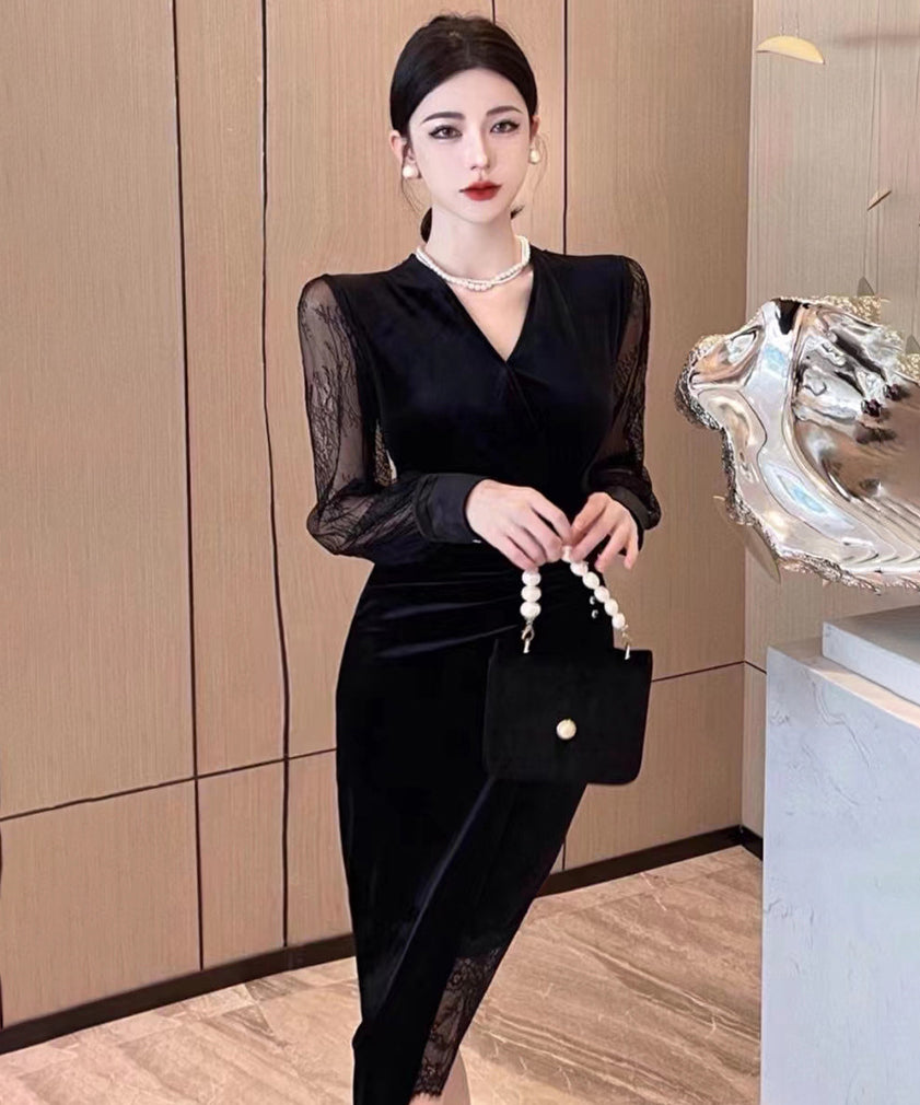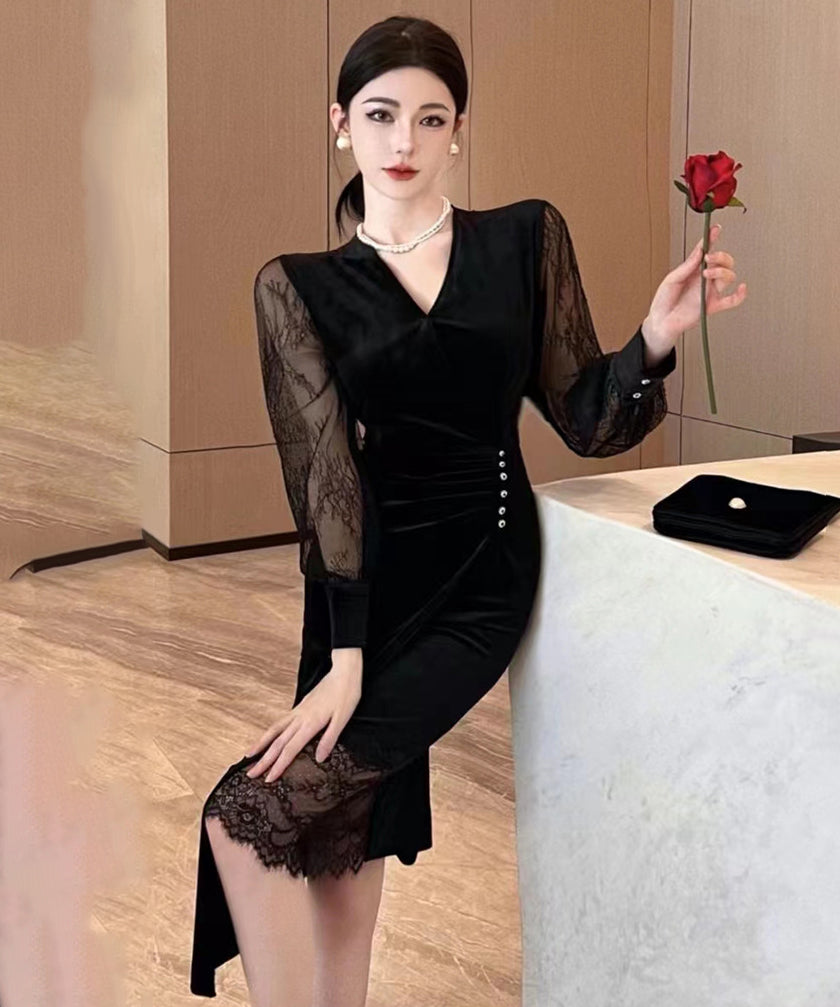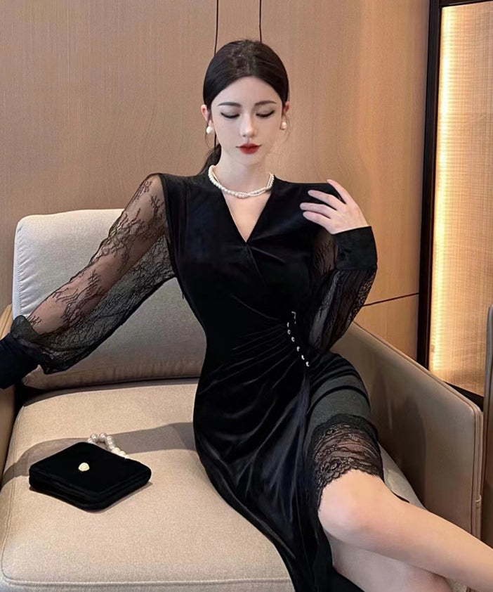 膝丈ドレス キャバドレス エレガント 気質 レース 高級感 Vネック セクシー XH2-ZED889932GT415