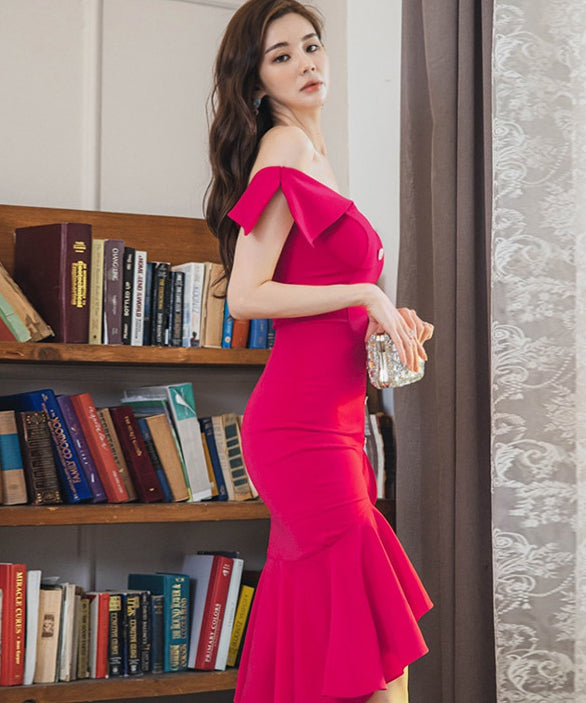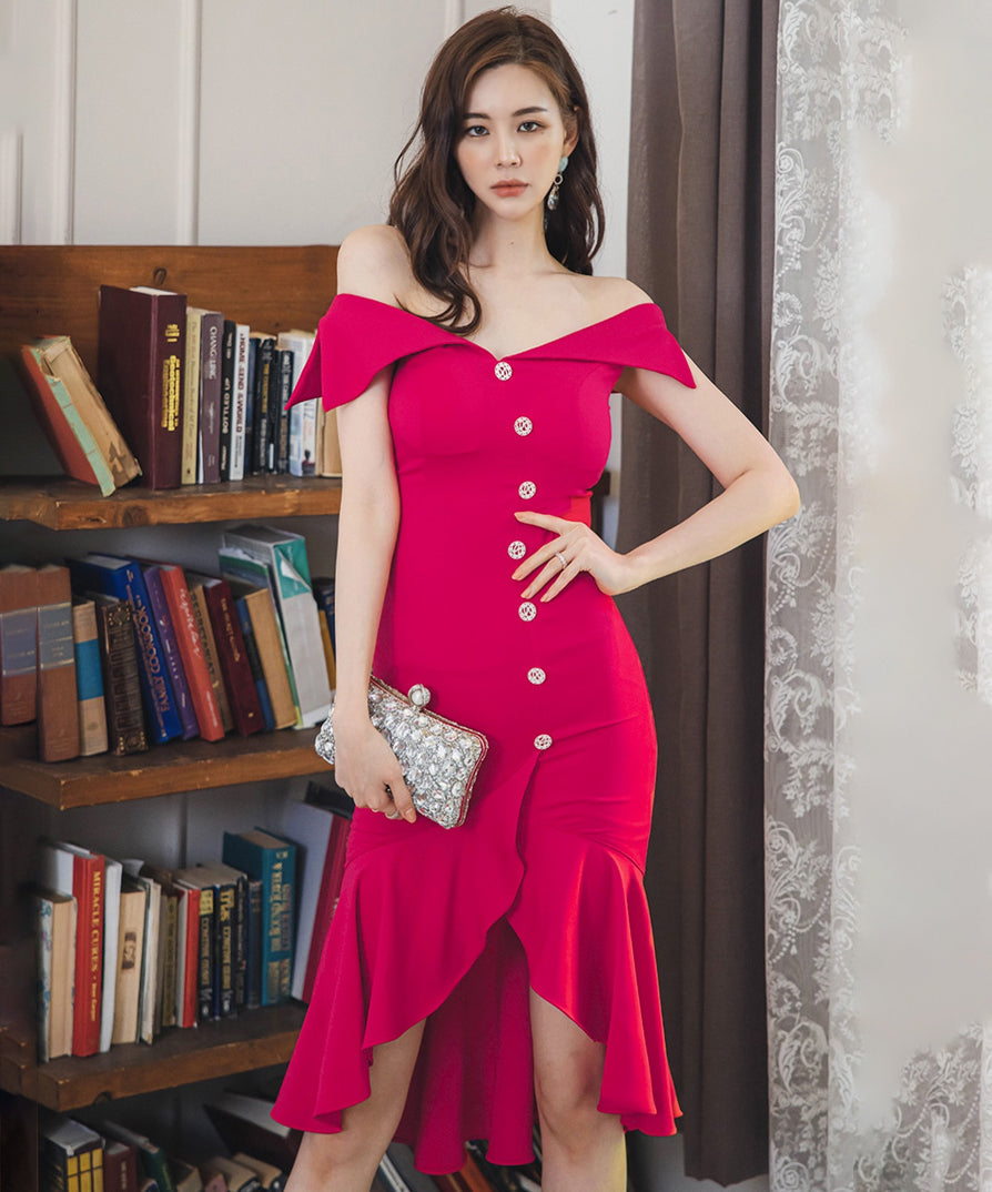 膝丈ドレス キャバドレス オフショルダー セクシー 着瘦せ お洒落 フリル XH2-ZED886565BH506