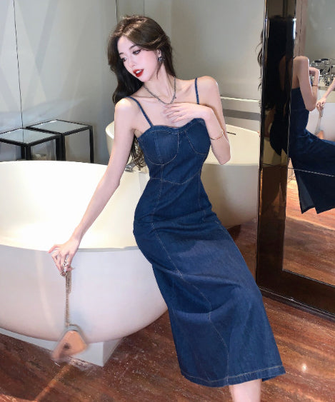 膝丈ドレス キャバドレス デニム セクシー 着痩せ おしゃれ 通勤 YH2-ZED882310GT510