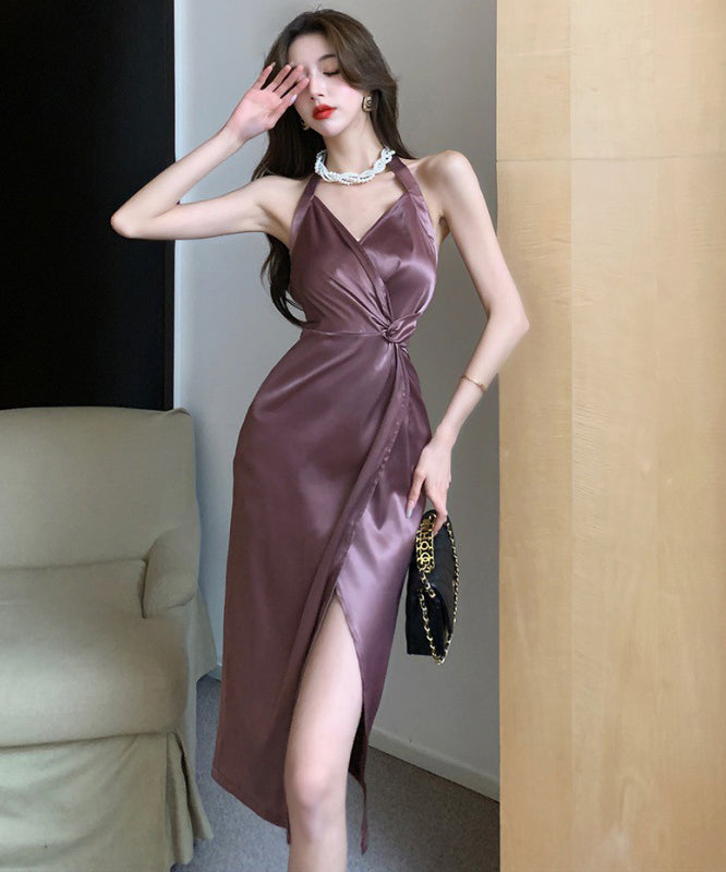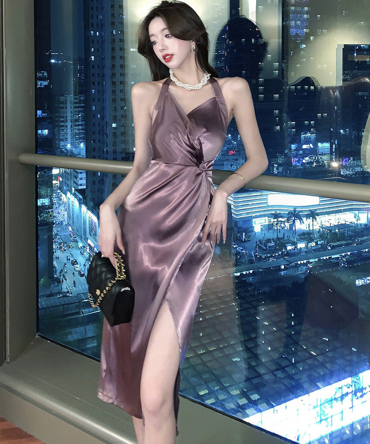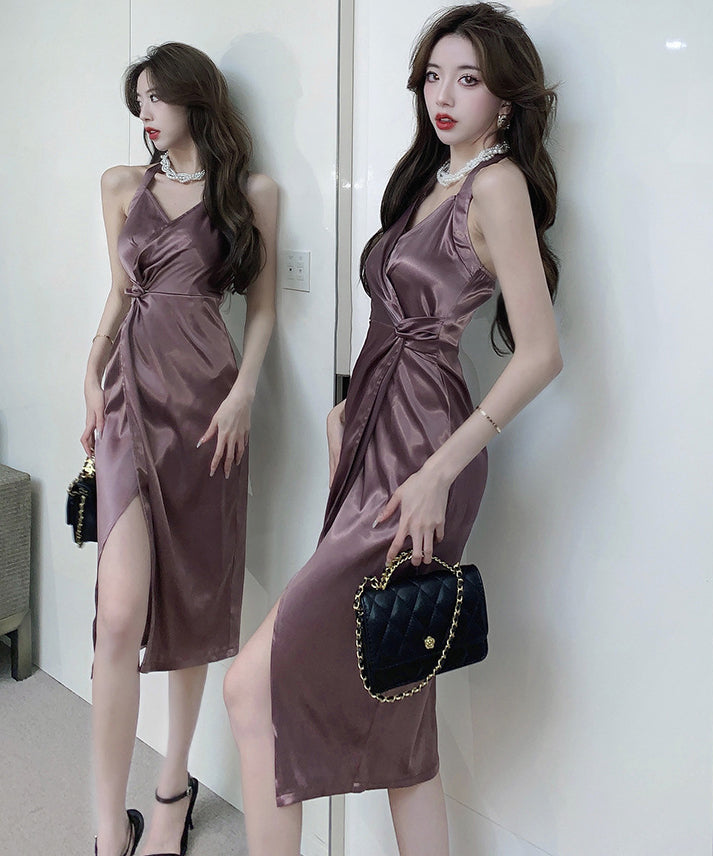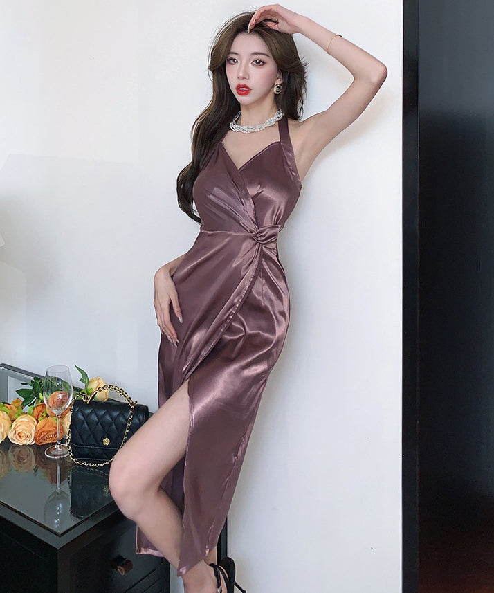 膝丈ドレス キャバドレス ホルターネック セクシー Vネック 非対称 XH2-LQE8531H450