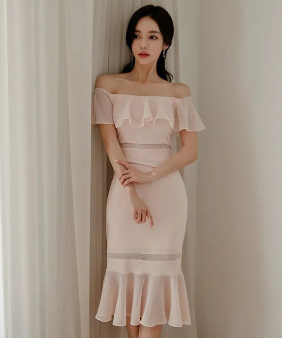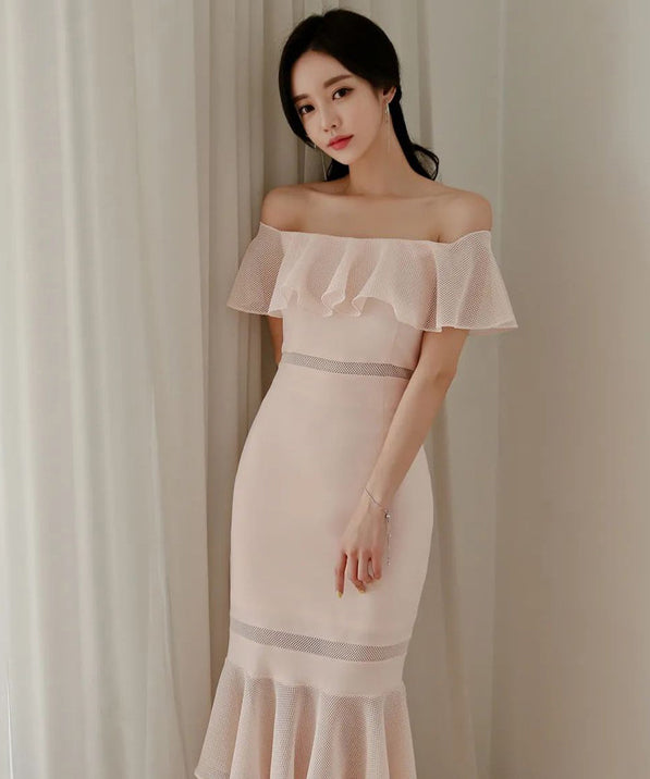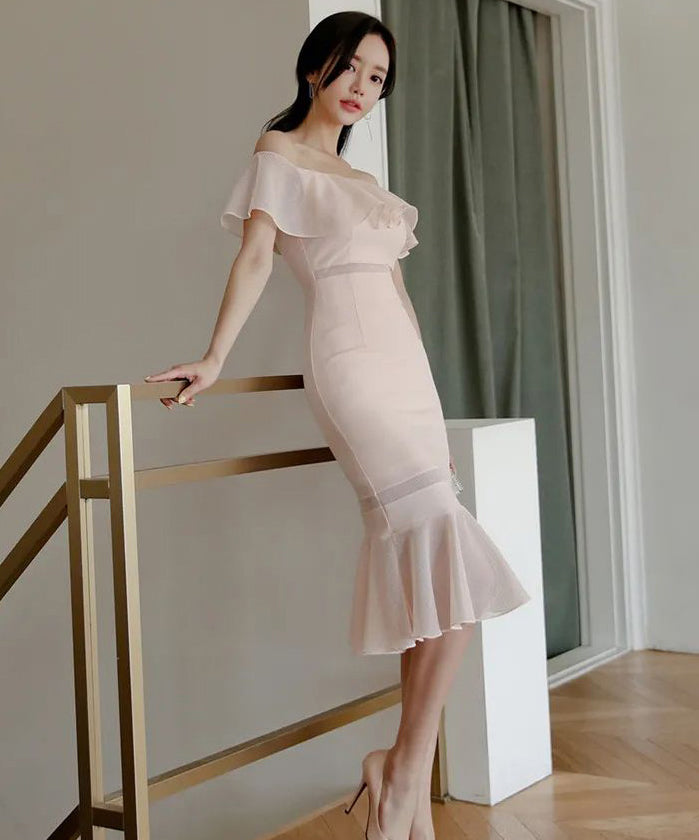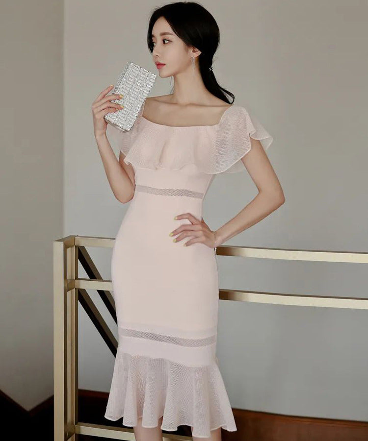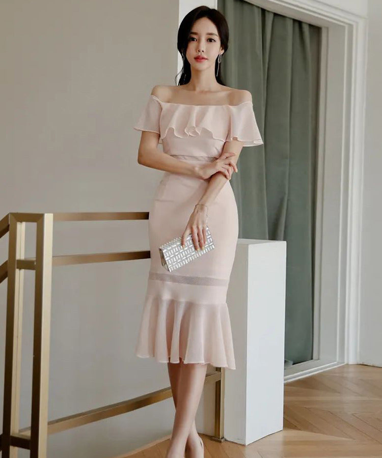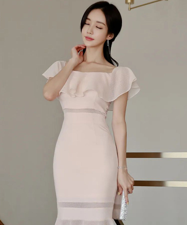 膝丈ドレス キャバドレス ワンショルダー 着痩せ セクシー エレガント おしゃれ YH2-ZED882709BH506