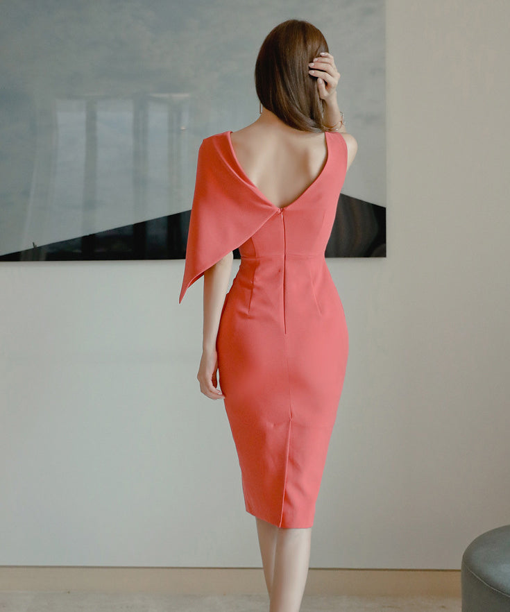 膝丈ドレス キャバドレス 不規則 通勤 おしゃれ 着瘦せ 気質 YH2-ZED882181BH506
