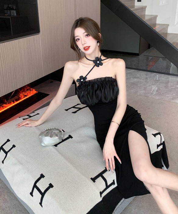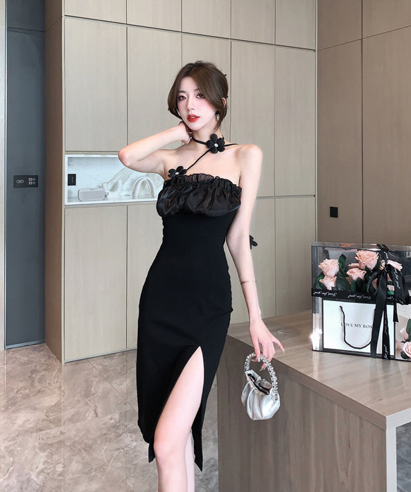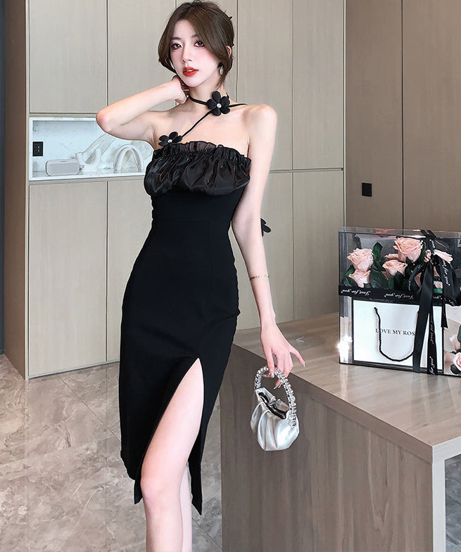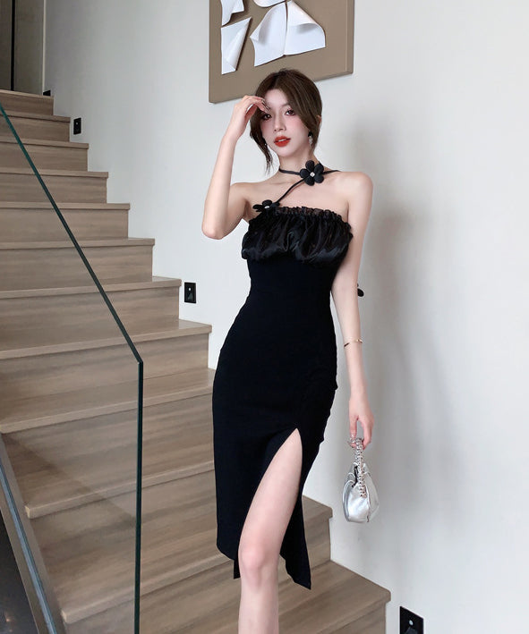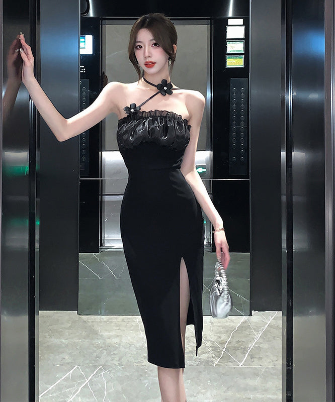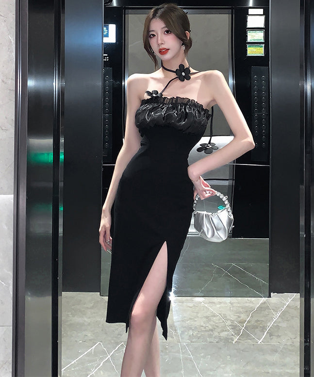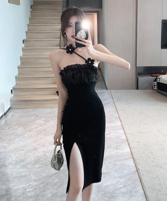 膝丈ドレス 新作 着痩せ セクシー 背露出 YT2-LQE5379GT528