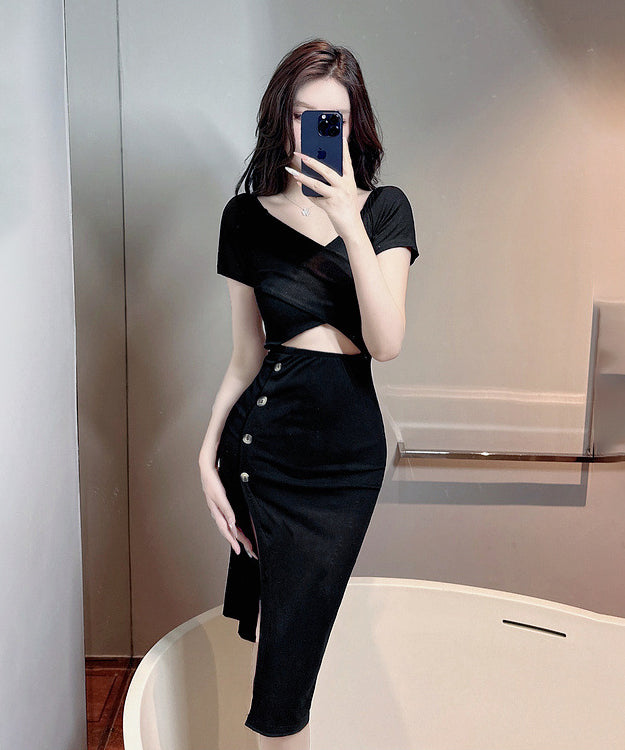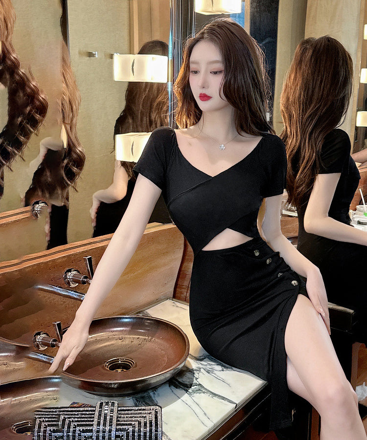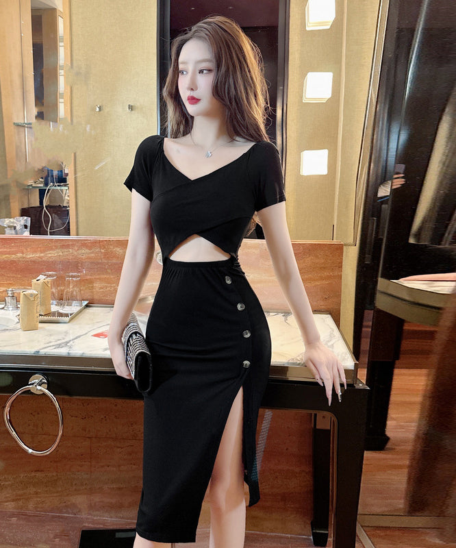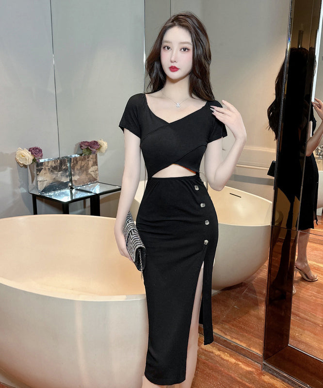 膝丈ドレス 新作 着痩せ 高見え セクシー YT2-MLS446