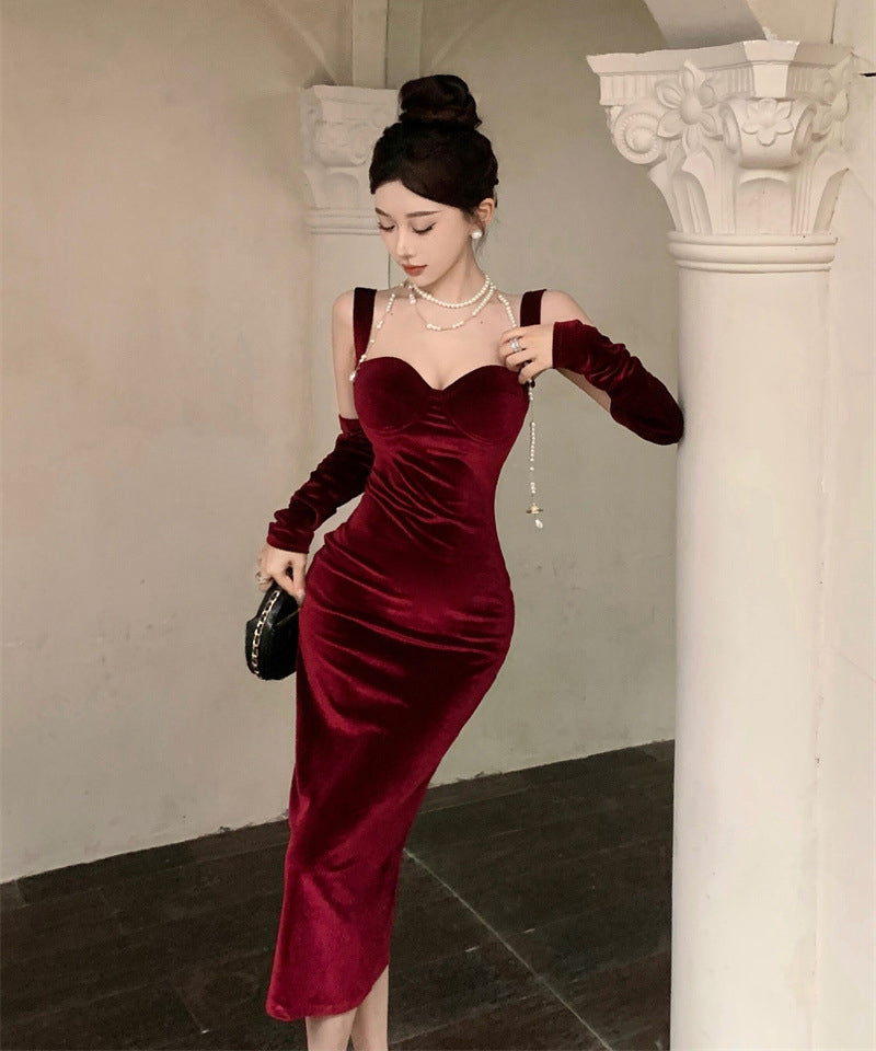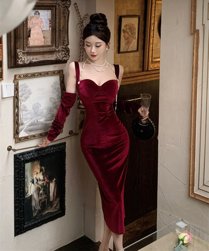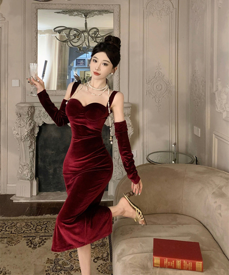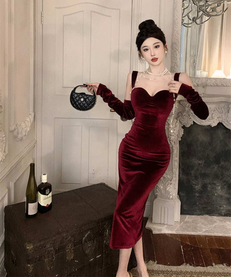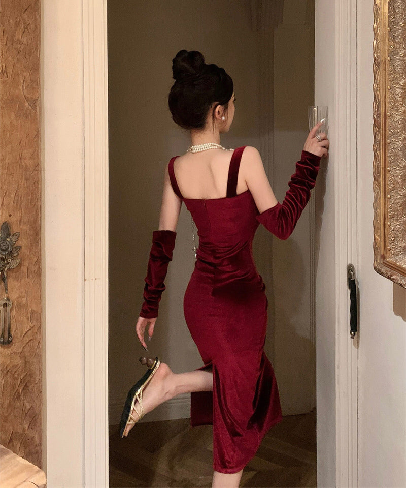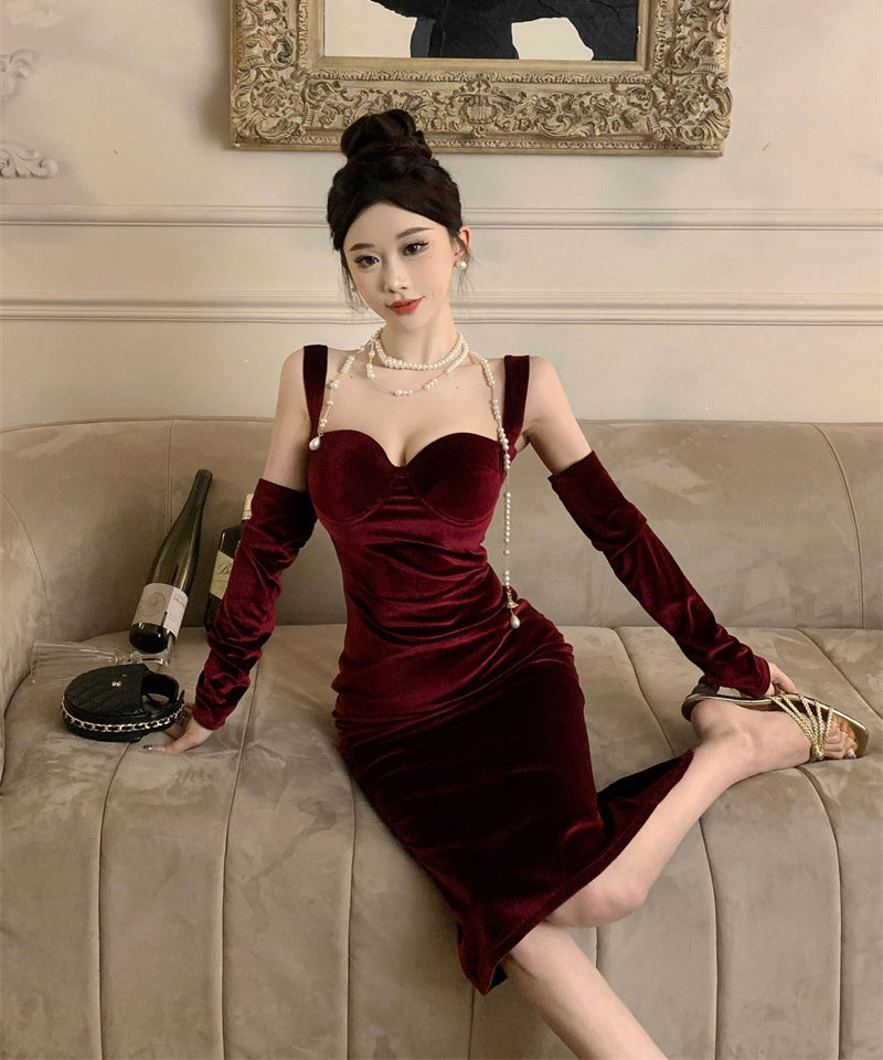 膝丈ドレス 肌見せ エレガント 気質 セクシー 着痩せ おしゃれ XH2-ZED881073DXH348