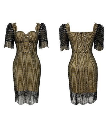 膝丈ドレス 高品質 キラキラ 二次会 結婚式 スクエアネック 宴会 エレガント XH2-JY10158