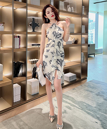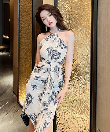 花柄 ホルターネック 真珠 セクシー 同伴 宴会 XH2-JY10078