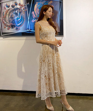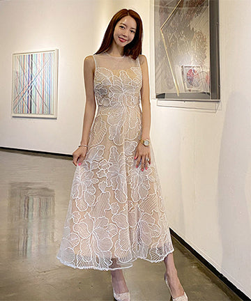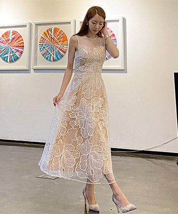 花柄 刺繡 ロングドレス セレブ 気質 チュール XH2-ZED887063E