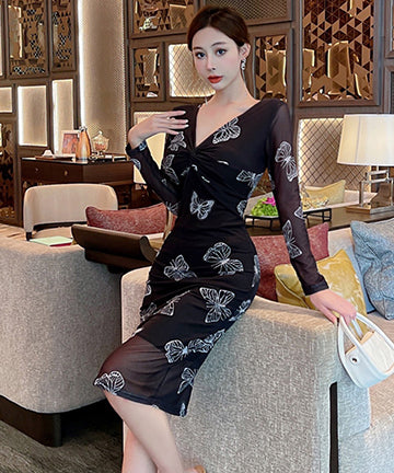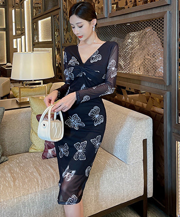 蝶々柄 新作 ロングドレス 高級感 セクシー 気質 ゴージャス LT2-LQE849