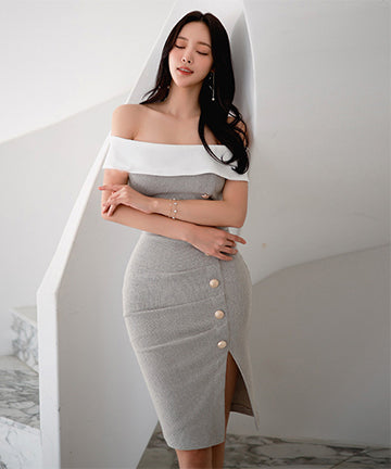 非対称 おしゃれ 韓国スタイル オフショルダー 脚長効果 セクシー XH2-ZED887336A71
