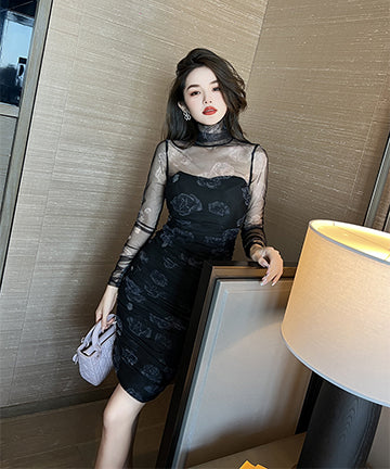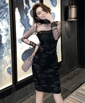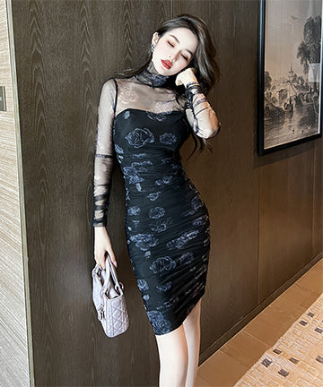 高級感 キャバドレス セクシー タイトドレス 宴会 花柄 同伴 デート チュール XH2-JY20209