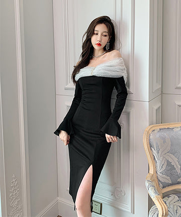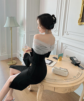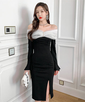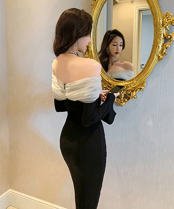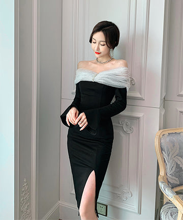 高級感 ダイヤモンド エレガント 宴会 チュール セクシー オフショルダー XH2-JY5280