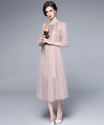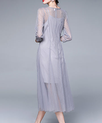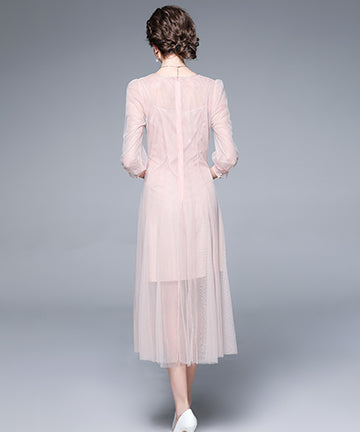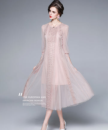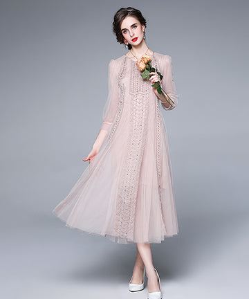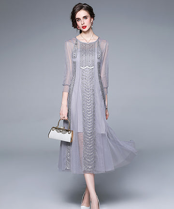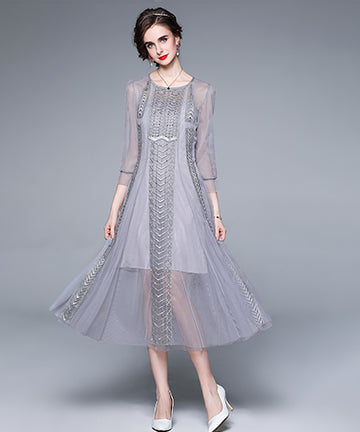 【2色】チュールロングドレス 通勤 刺繡 淑やか XH2-QYF32616X6708080