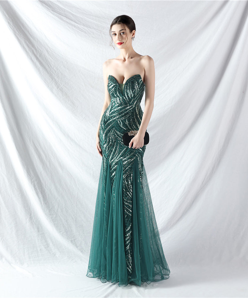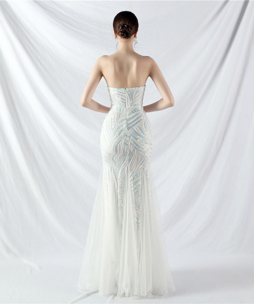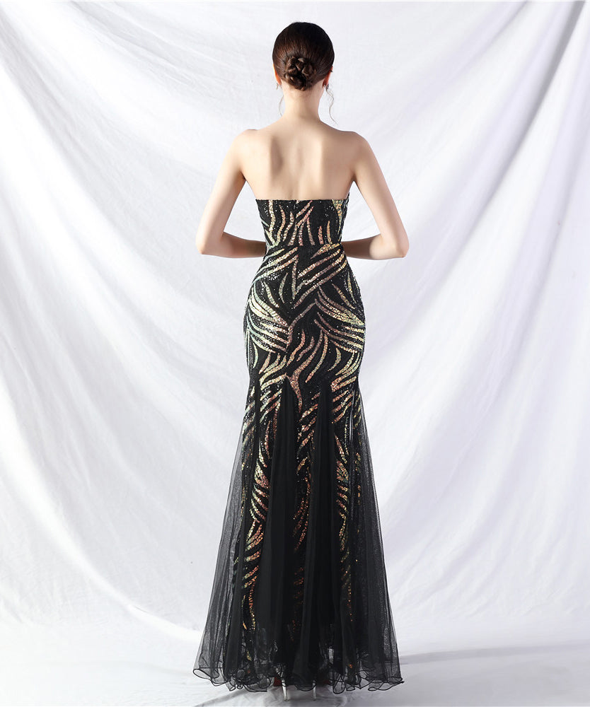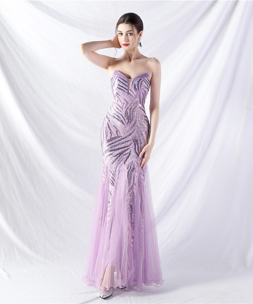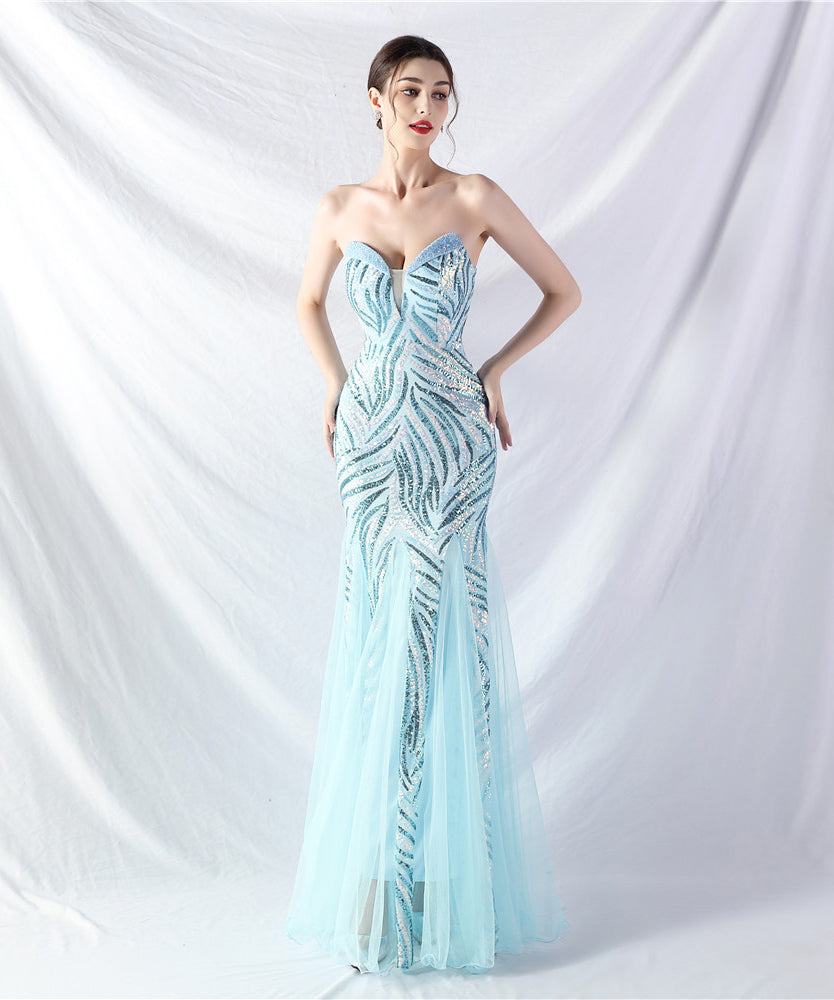 【10色】ロングドレス チュール 高品質 キラキラ 気質 オフショルダー 宴会 YH2-YEY31812#
