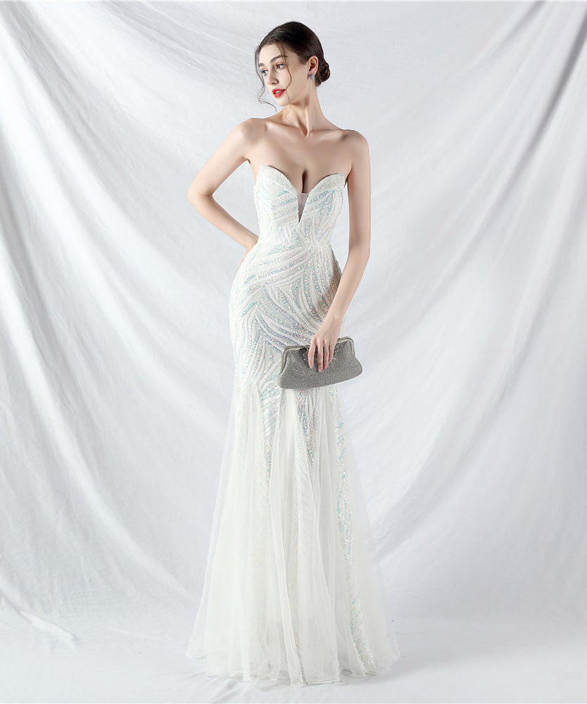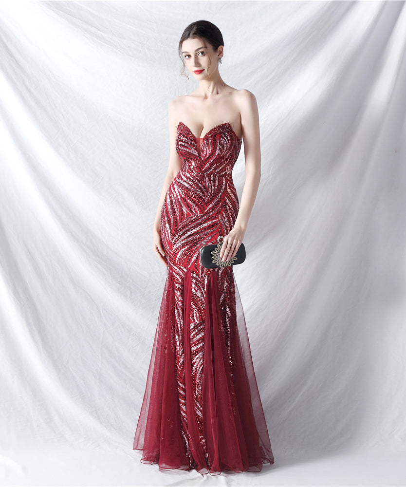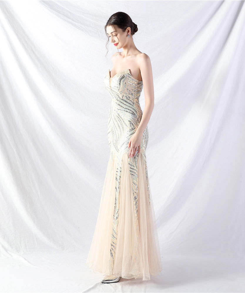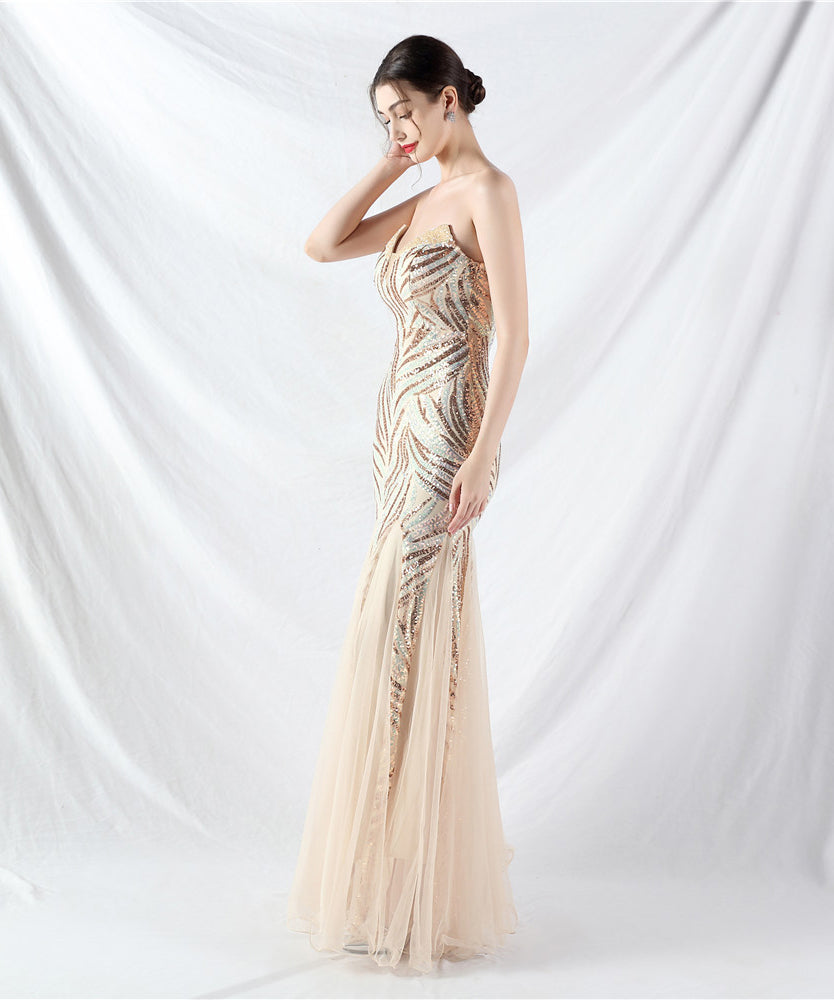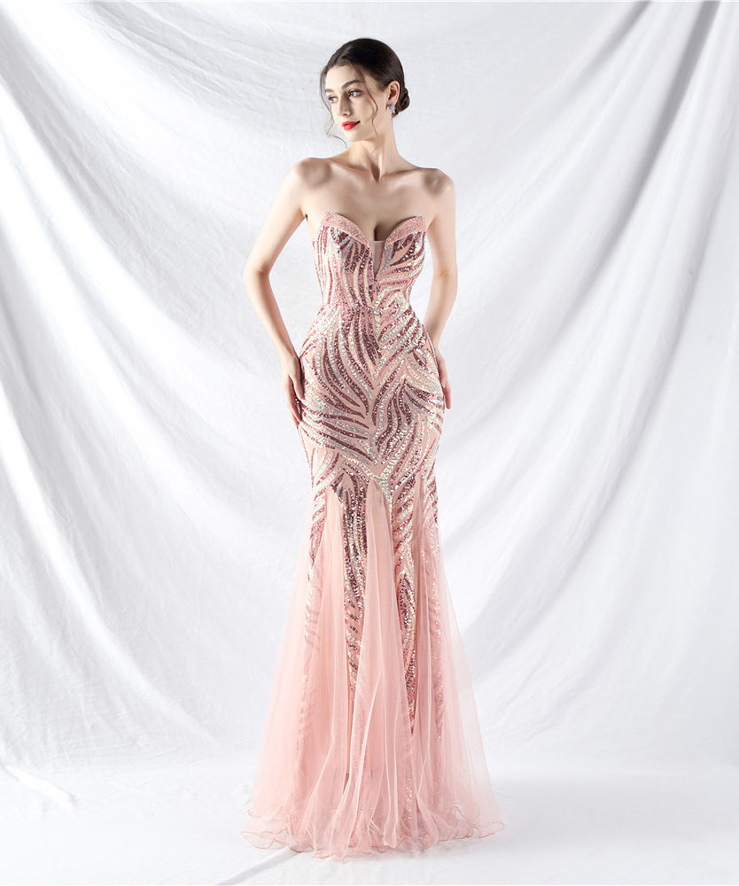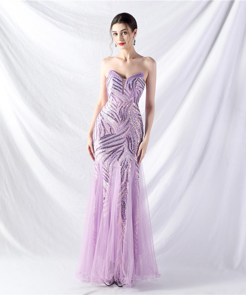 【10色】ロングドレス チュール 高品質 キラキラ 気質 オフショルダー 宴会 YH2-YEY31812#