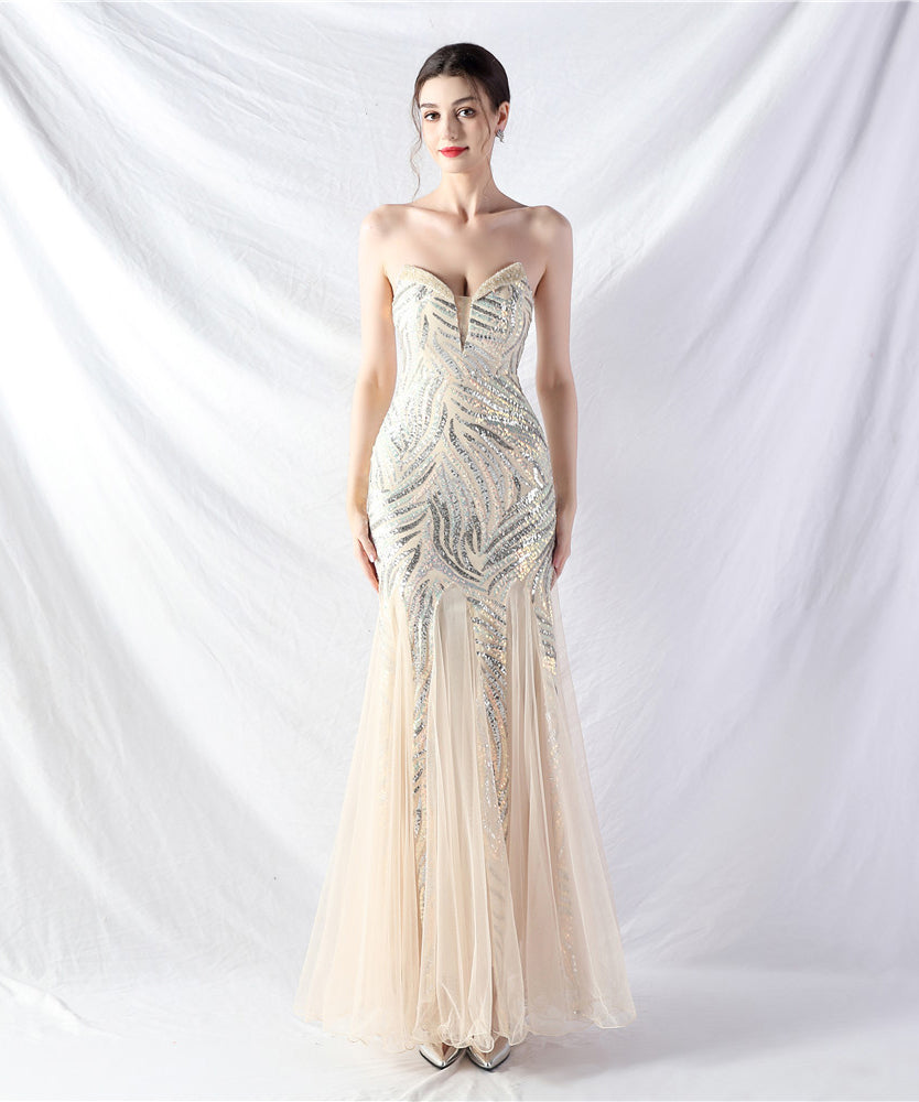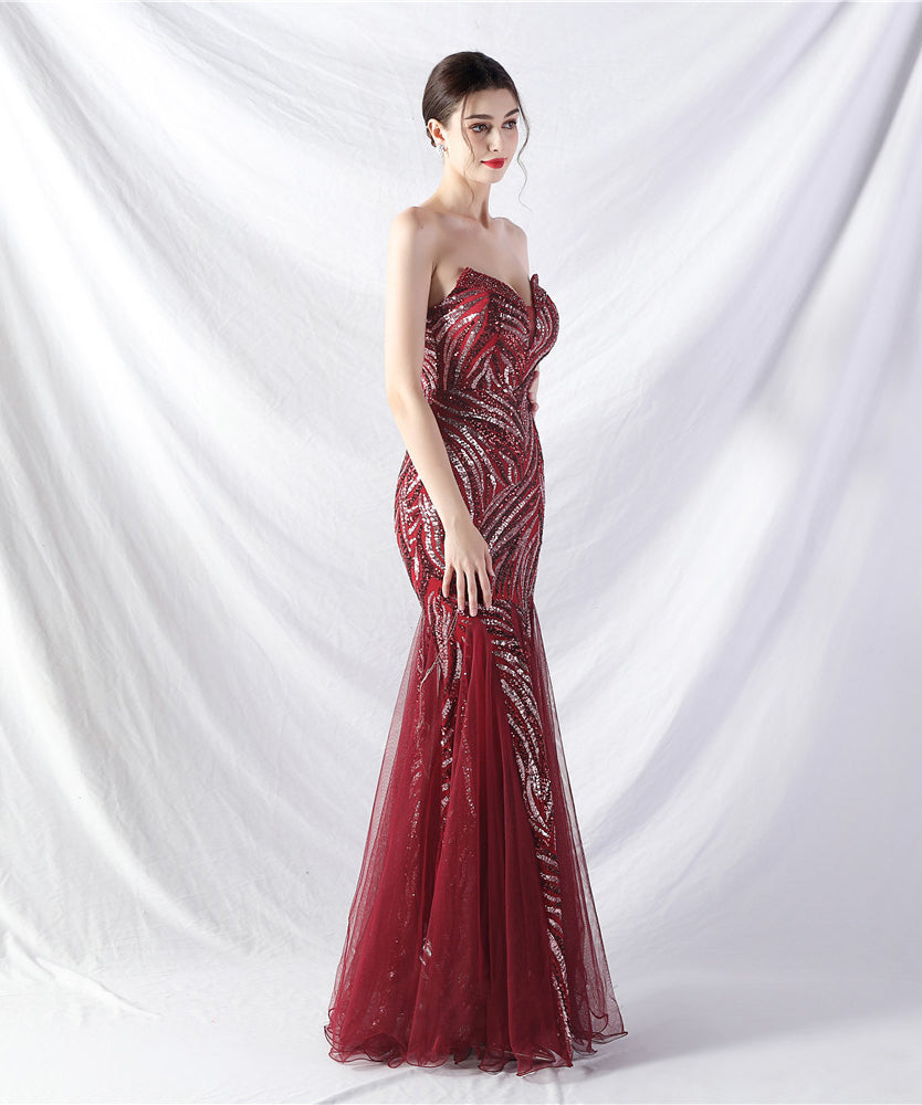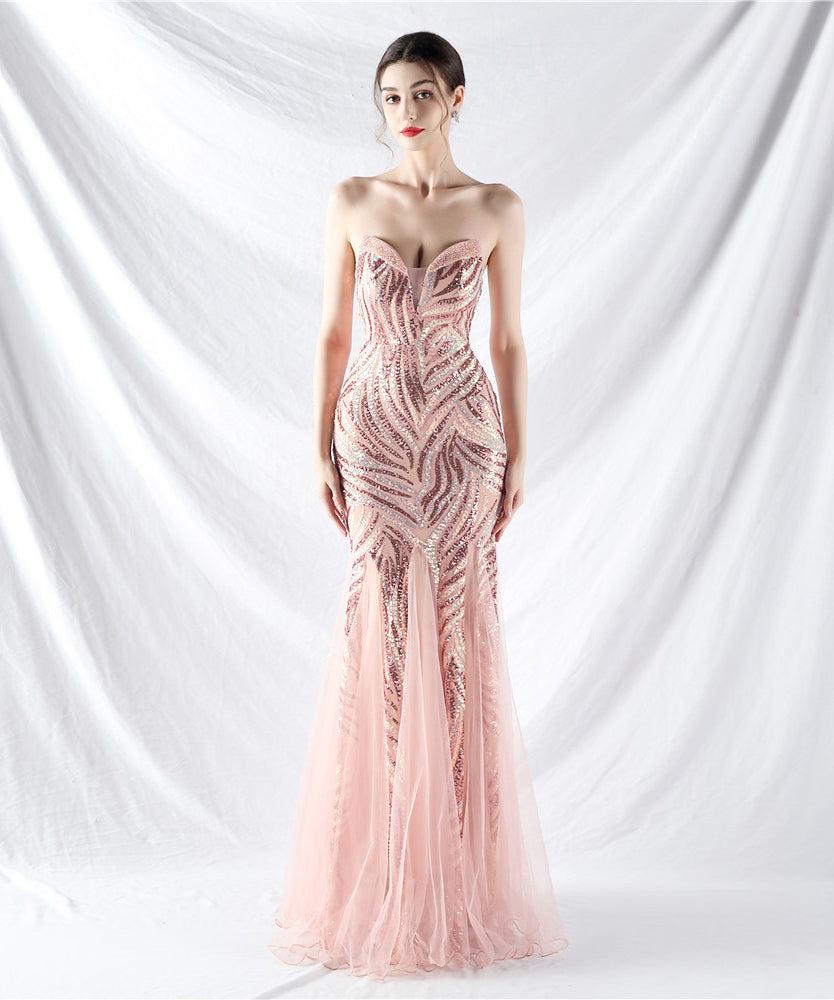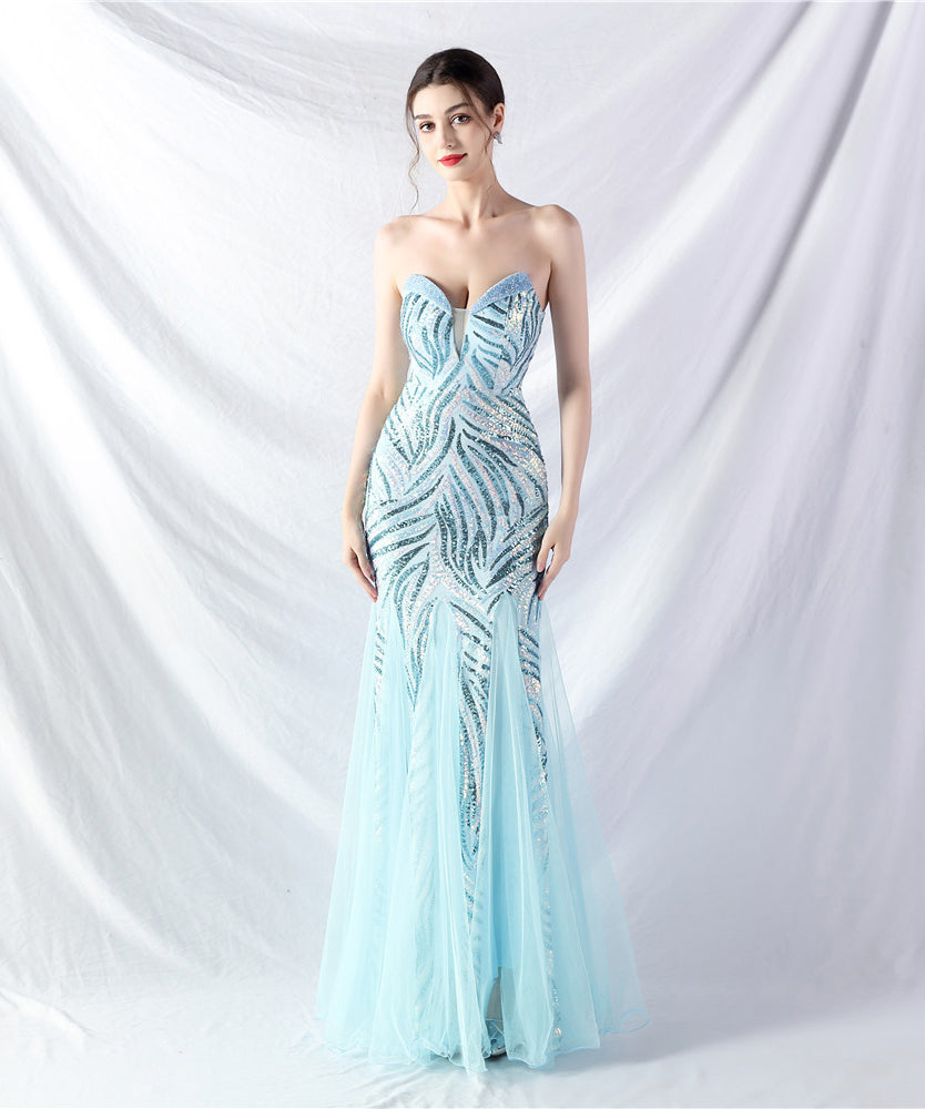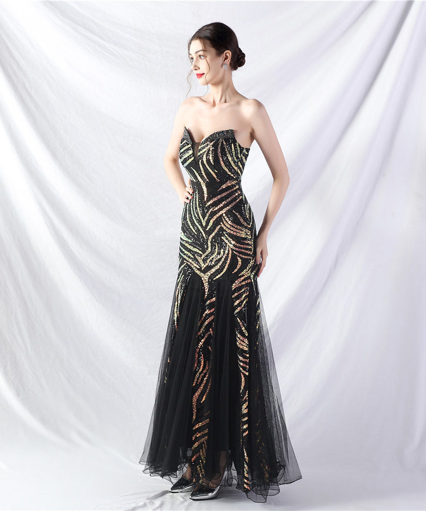 【10色】ロングドレス チュール 高品質 キラキラ 気質 オフショルダー 宴会 YH2-YEY31812#