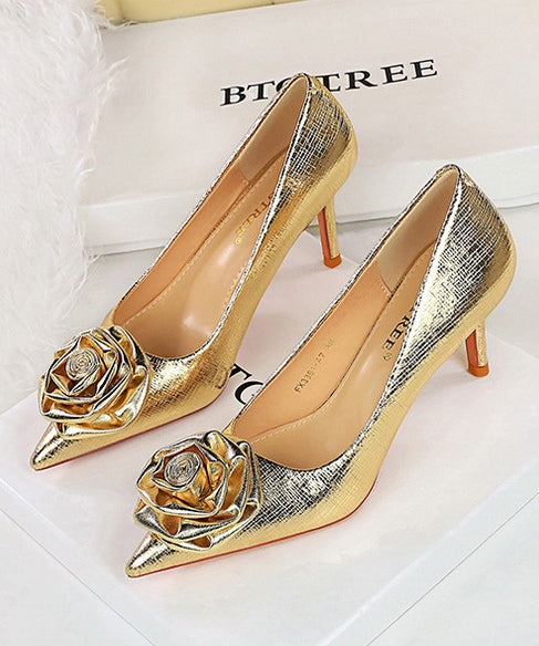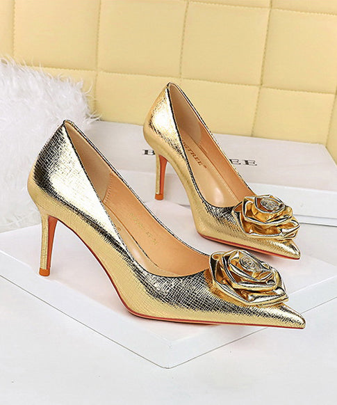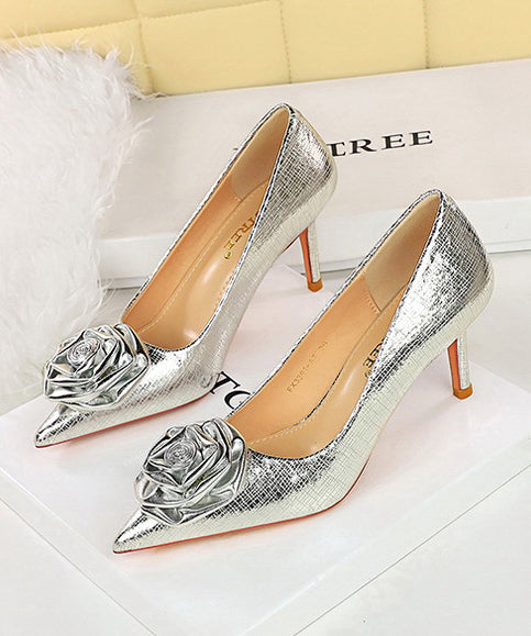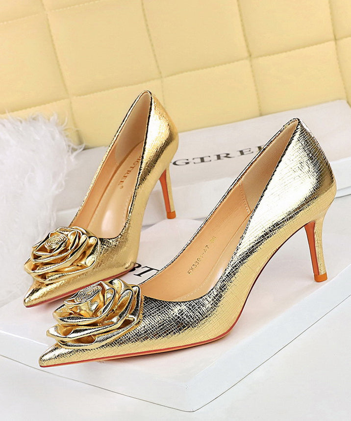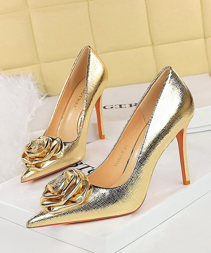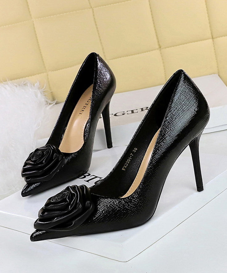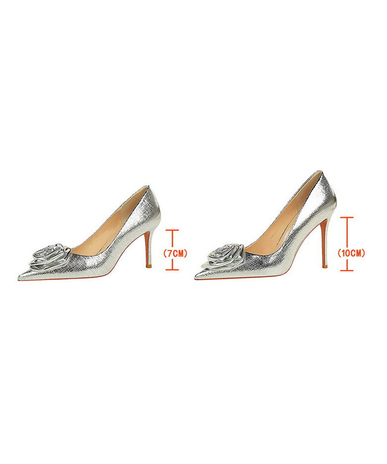 【10cm/7cmヒール】ハイヒール パンプス キラキラ 花 立体感 高見え パーティー 3色 MY5-DS-3391-AH56