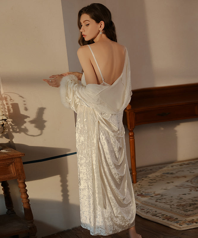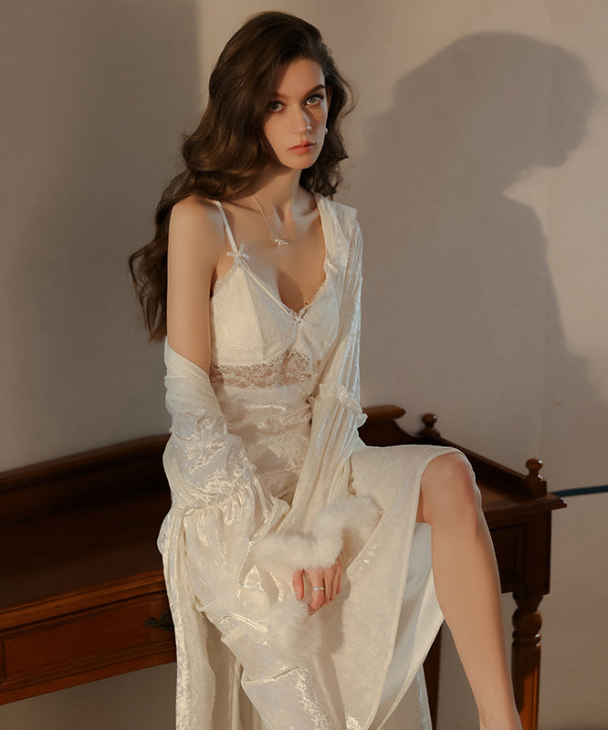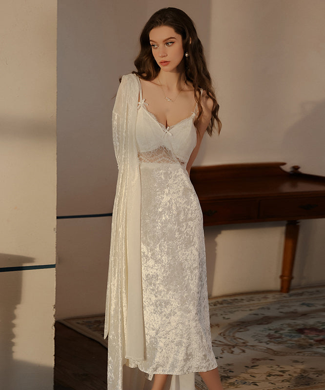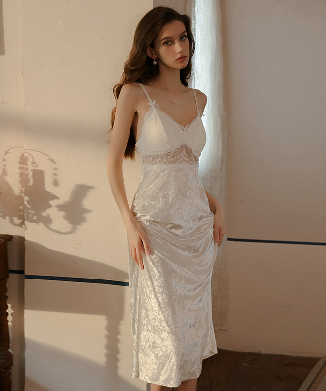 【2点セット選択可能】ベビードール ロング パジャマ ルームシェア ベルベット 高級感 レース 柔らかい MY8-GR4776