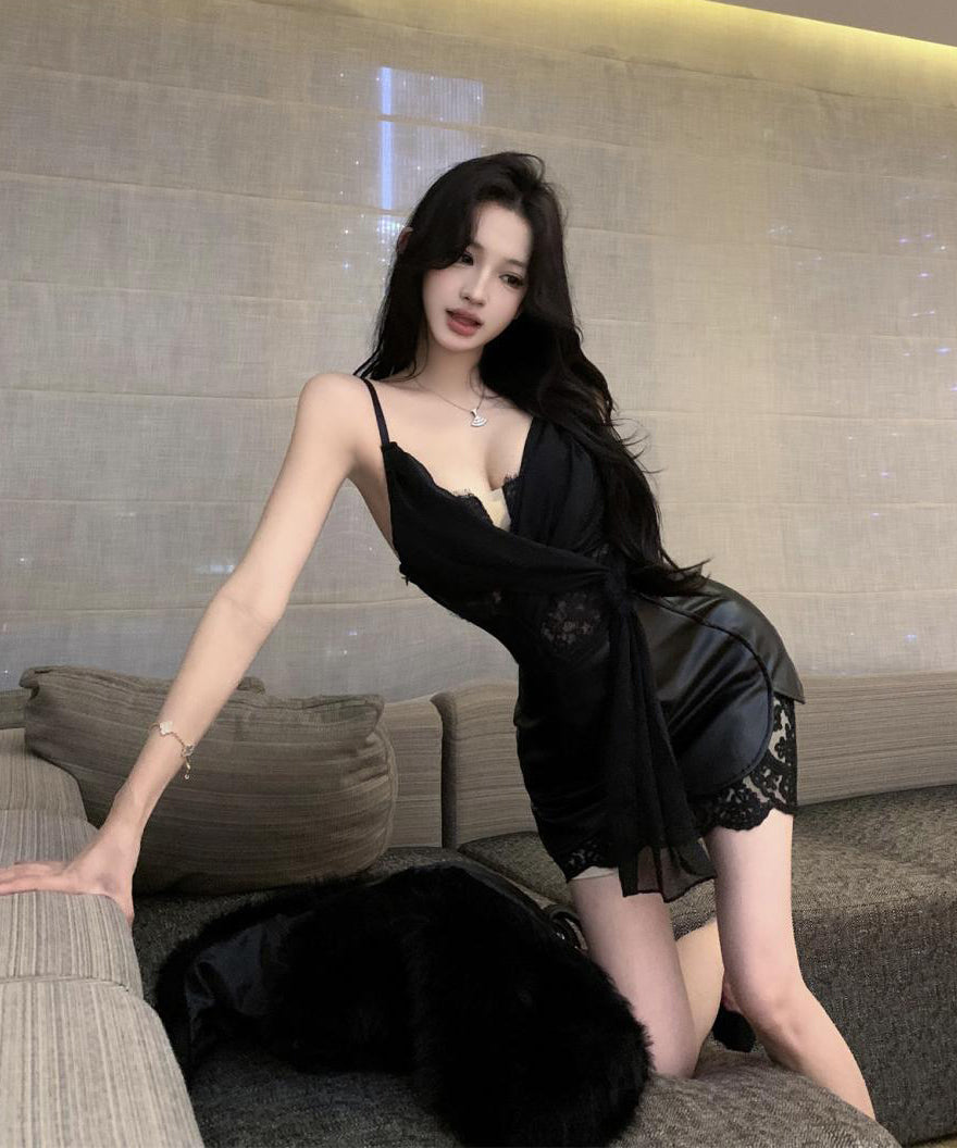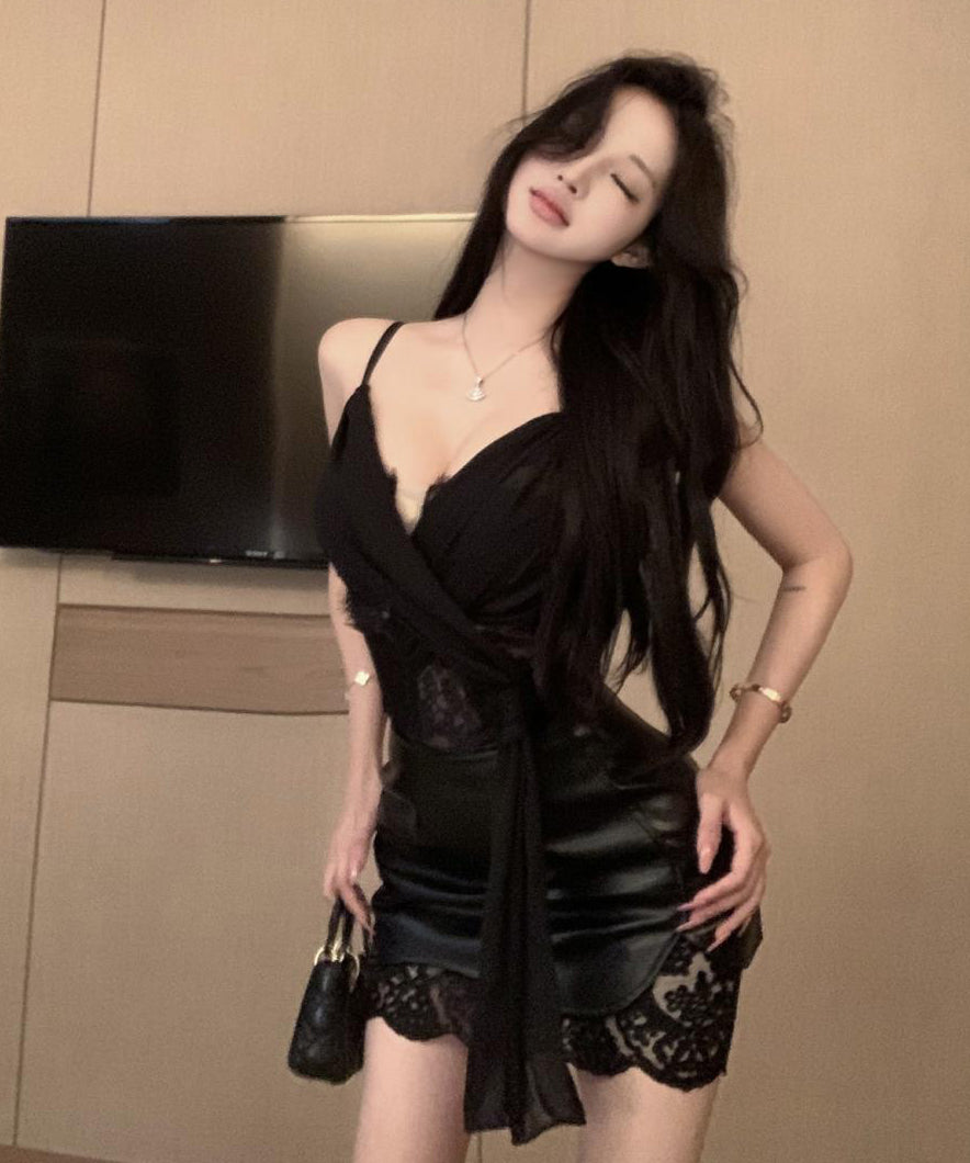 【2点セット】ミニドレス キャバドレス セクシー ギャル系 キャミレーストップス×レザーミニスカート JC2-XKDD335A-3140-Sep21