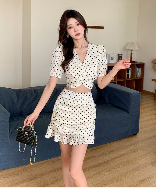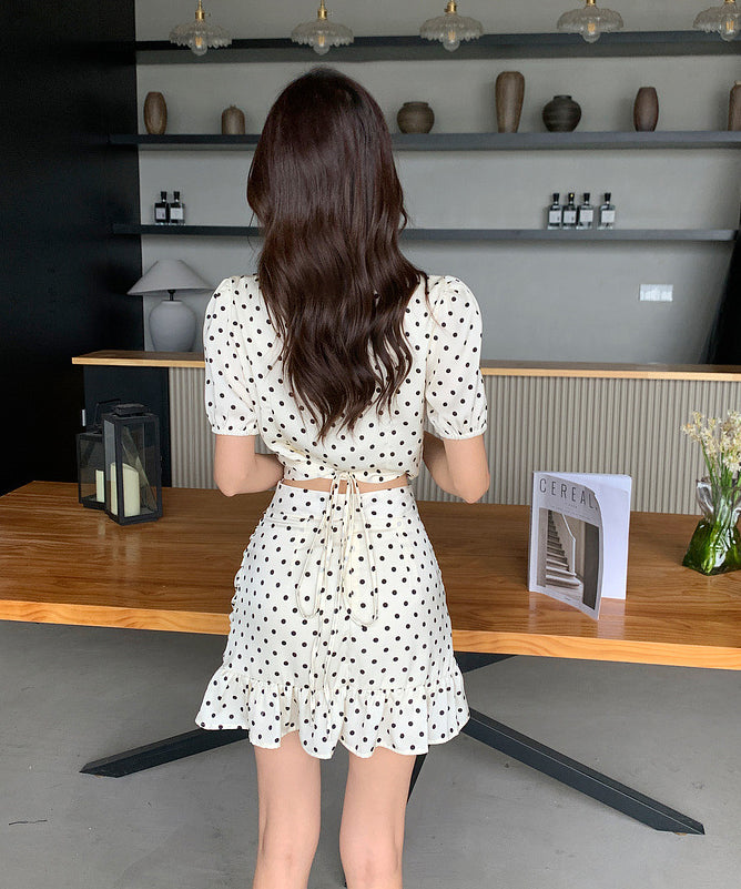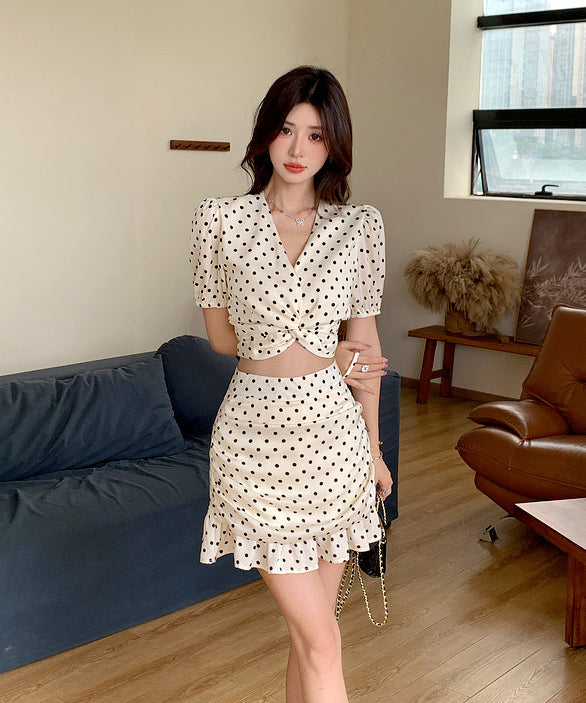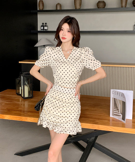 2点セット ミニドレス パフ袖 エレガント 水玉模様 おしゃれ かわいい YH2-ZED889768GT347