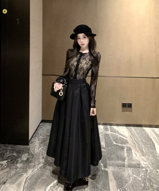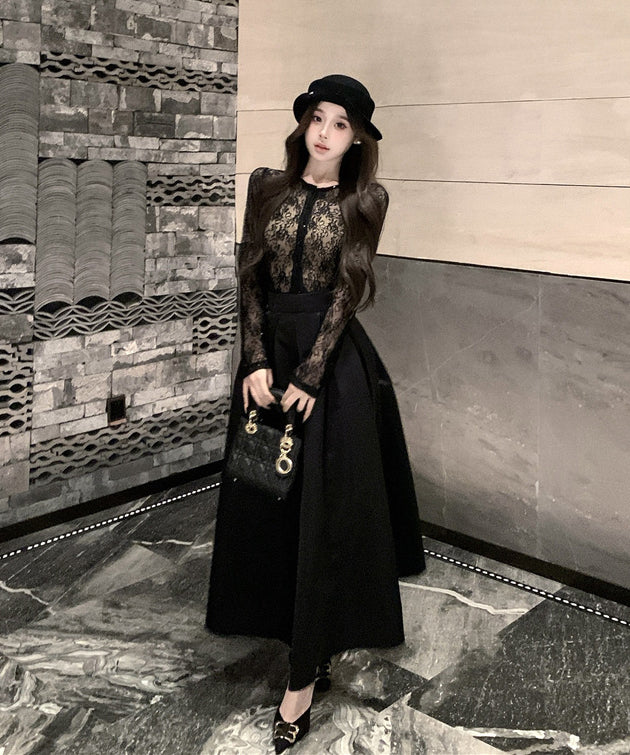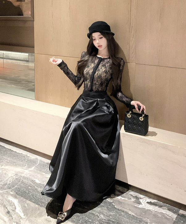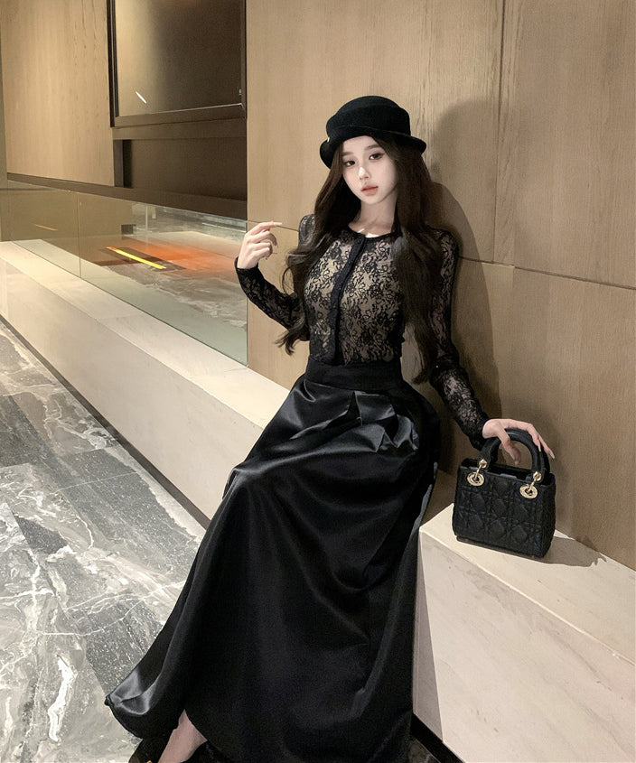 【2点セット】ロングドレスレースエレガントAラインセレブ風大人可愛い着痩せ気質XH2-XKD-D342-904-Nov22