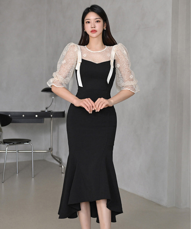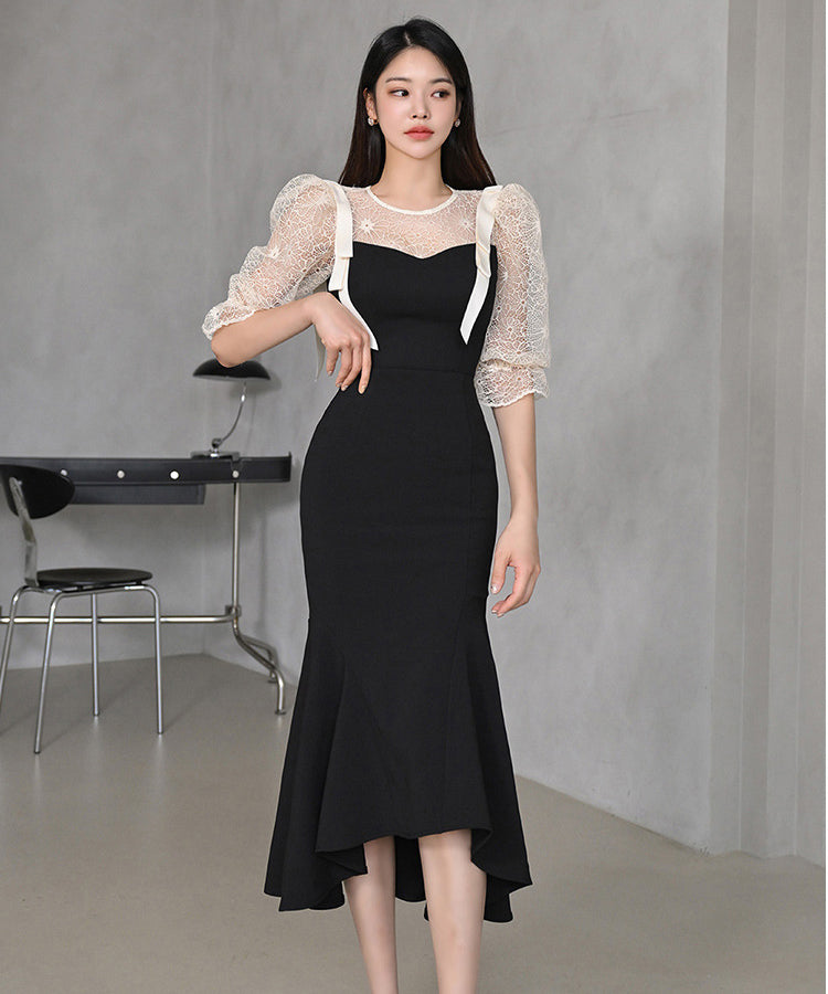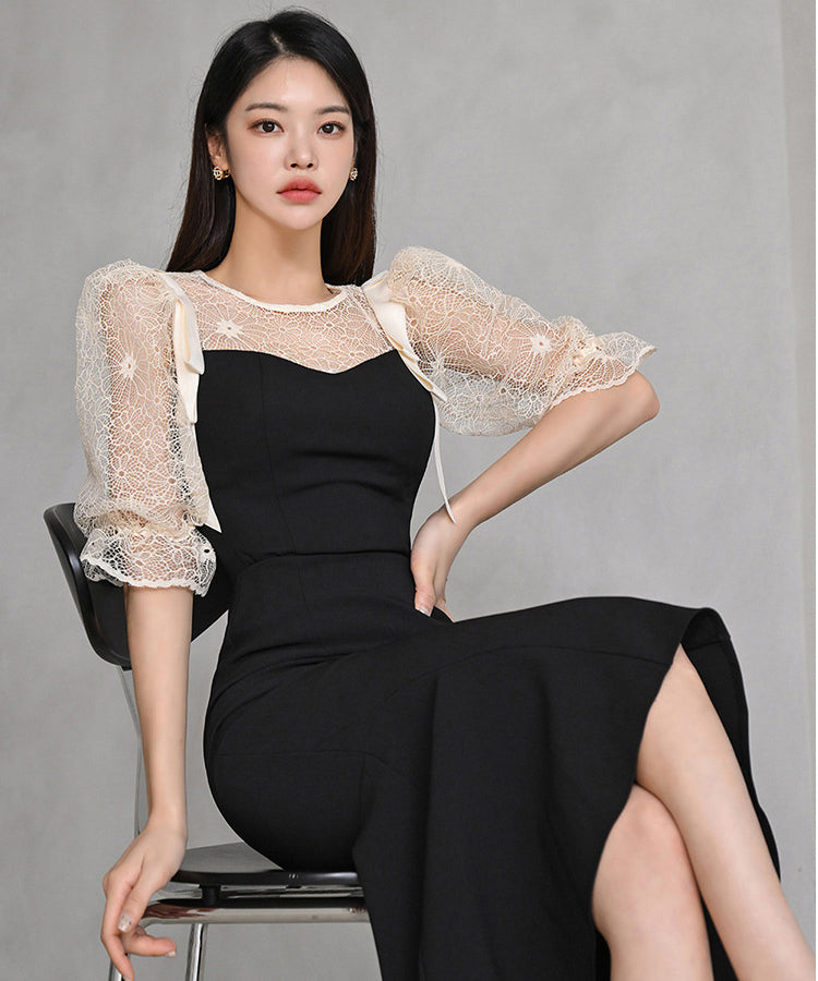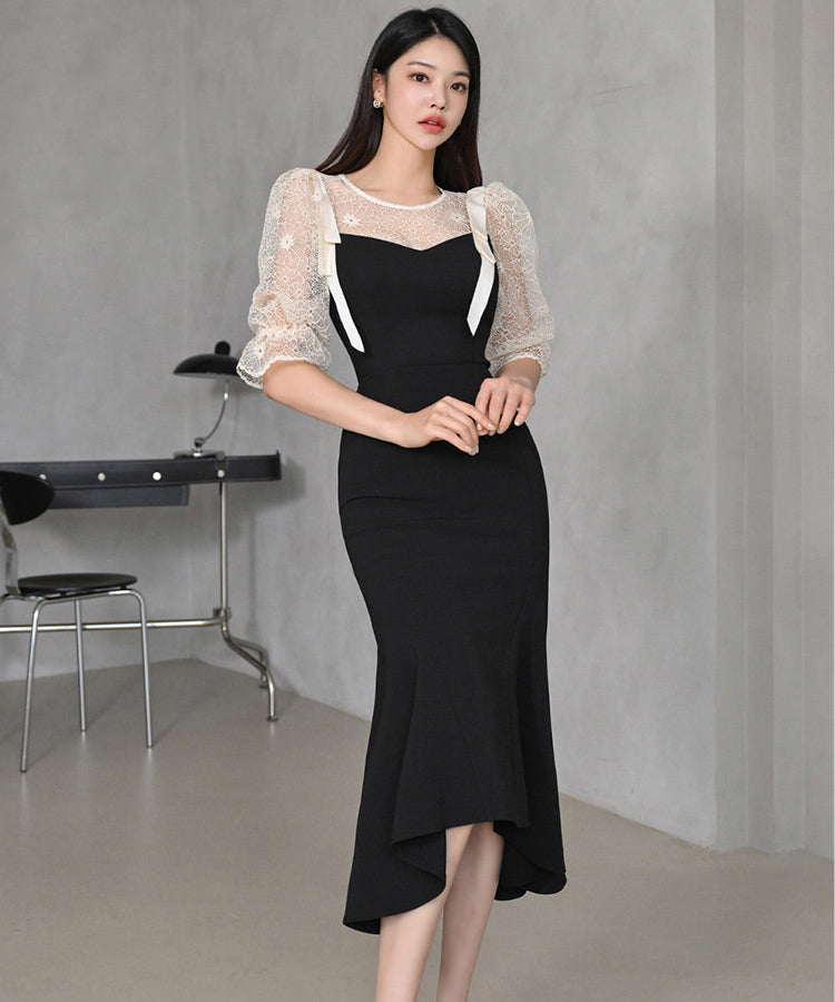 2点セット 膝丈ドレス キャバドレス エレガント パフスリーブ 気質 おしゃれ YH2-ZED88359A71