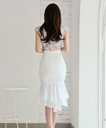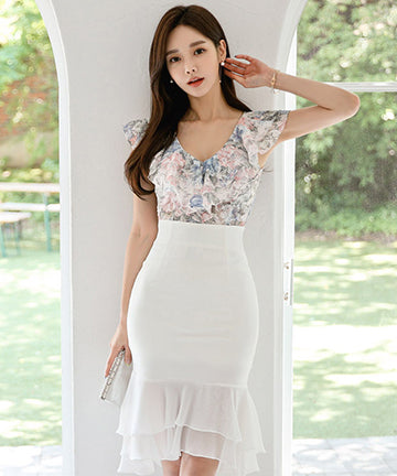 【2点セット】花柄 胸元フリル 大人可愛い セクシー XH2-ZED885112GT525