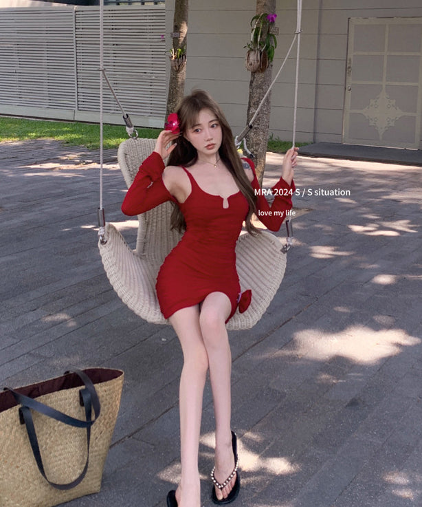 2点セット【2色】ミニドレス キャバドレス 谷間見せ フラワー セクシー パーティー 指名 XH2-XKD-D529-6016-Apr11