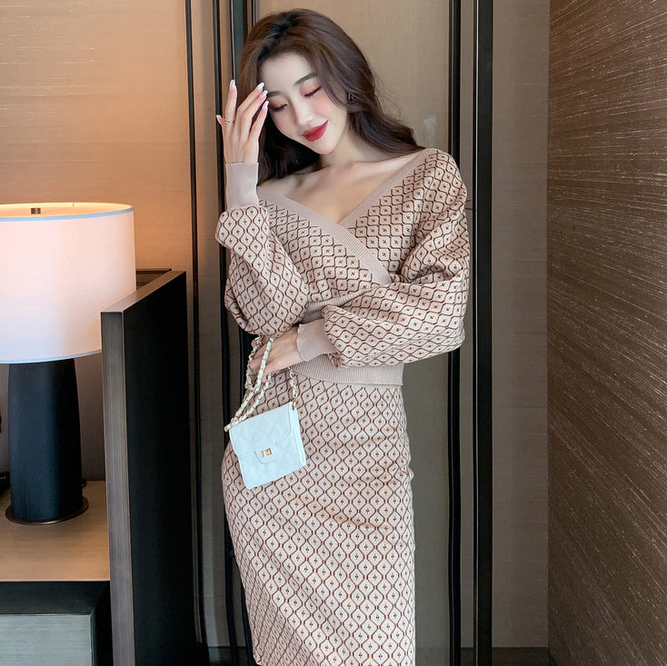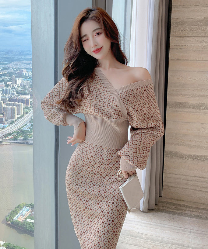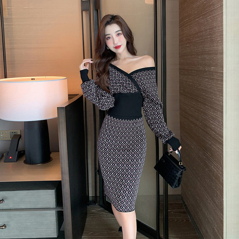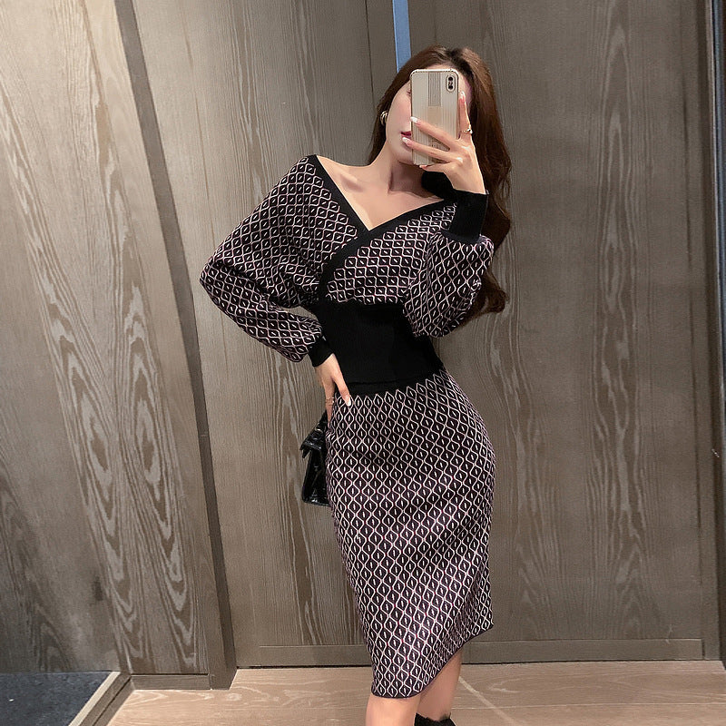 2点セット 5色 秋 同伴 アフター 二次会 Ⅴネック セクシー 防寒対策 長袖 ロングドレス MY2122