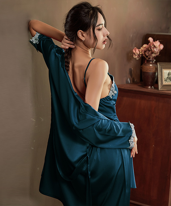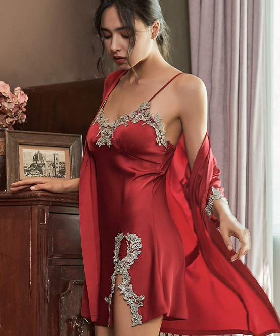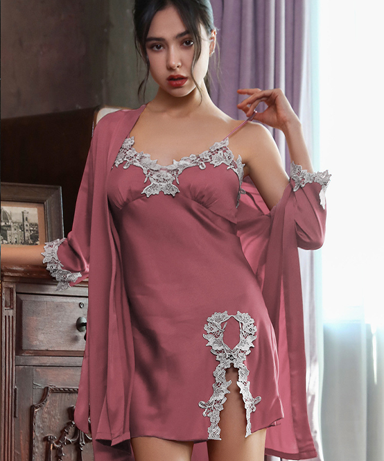 【2点 ドレス+コート】セクシー ランジェリー 大きいサイズ ベビードール シースルー レース Tバッグ セット XY-XE-2127