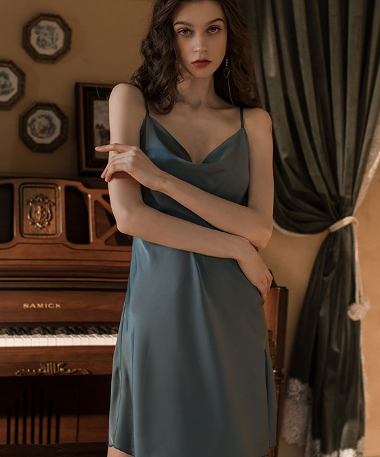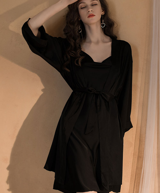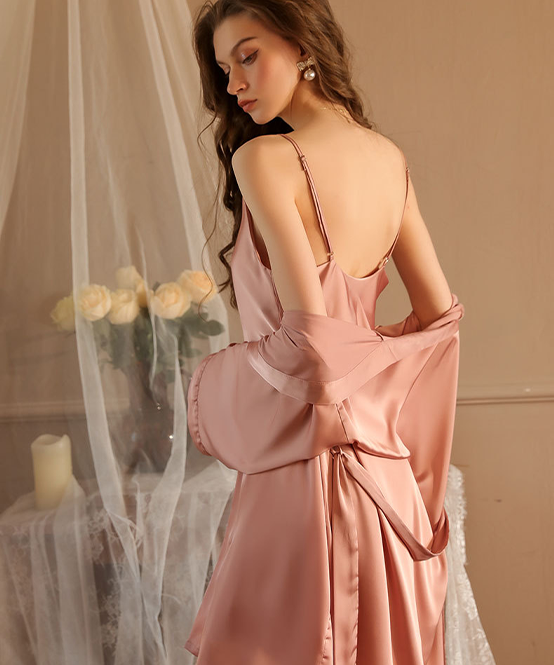 【2点 ドレス+コート】パジャマ レディース セクシー キャミソール サテン ナイトウェア 過激 ストラップ 調整可能 ランジェリー XY-XE-2283