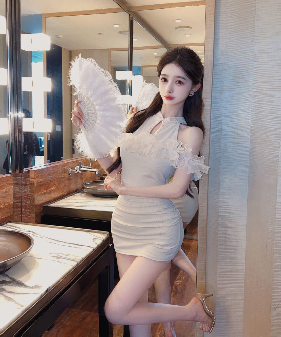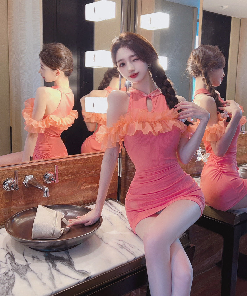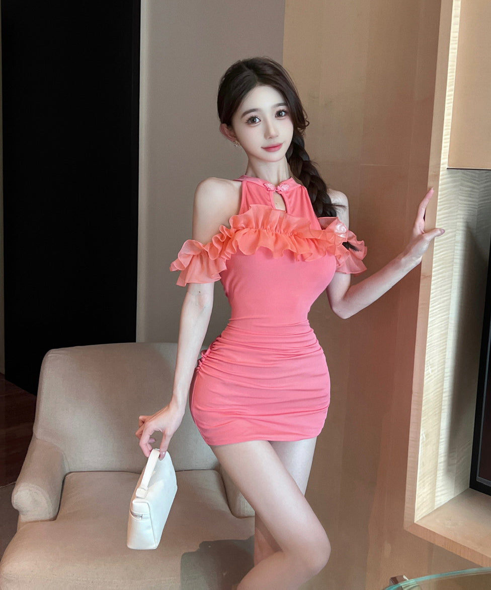 【2色】キャバドレスミニドレスフリルカワセクシー谷間見せキャバクラXH2-DD6425