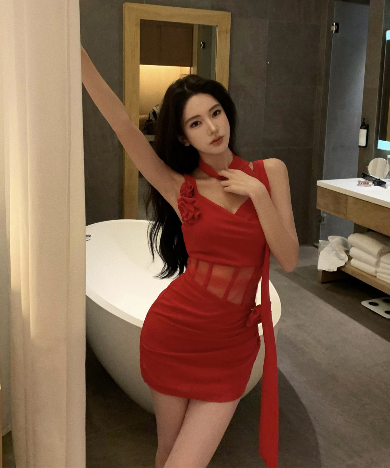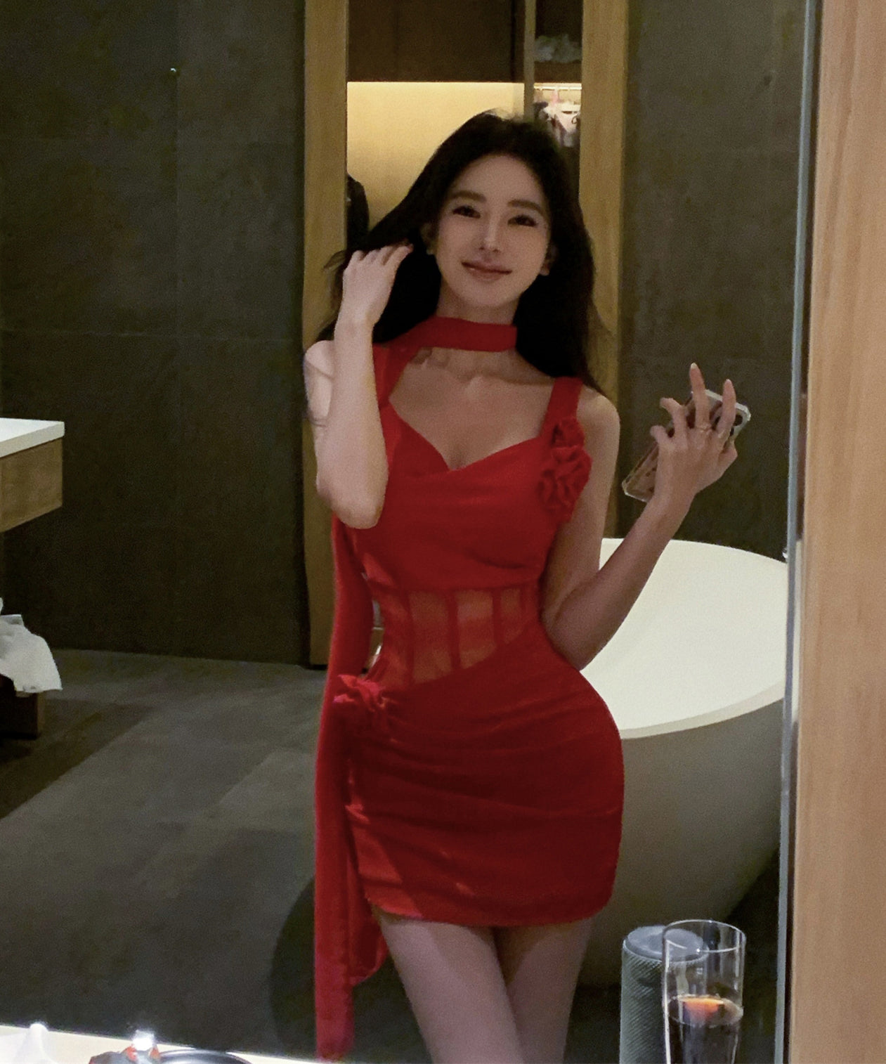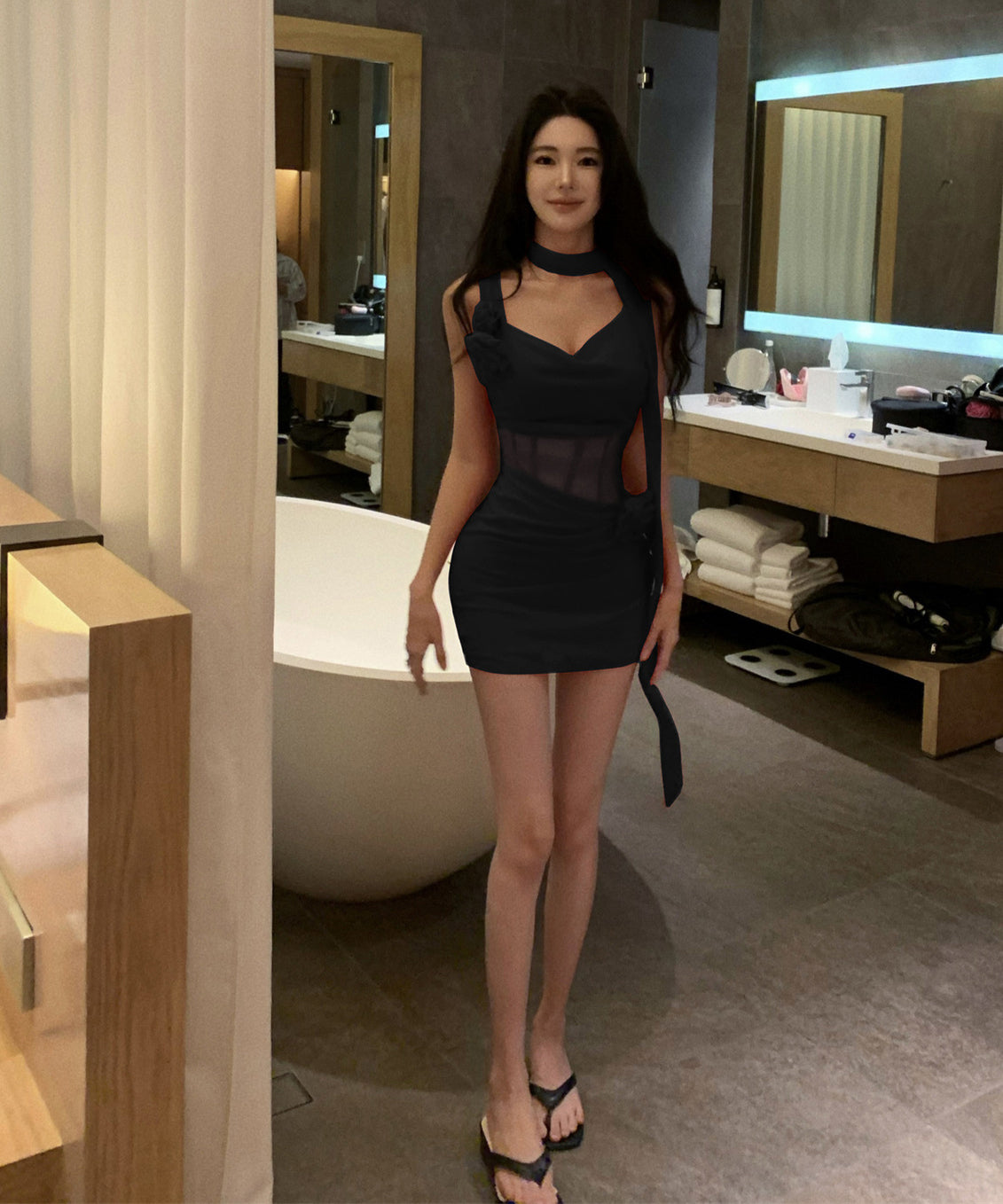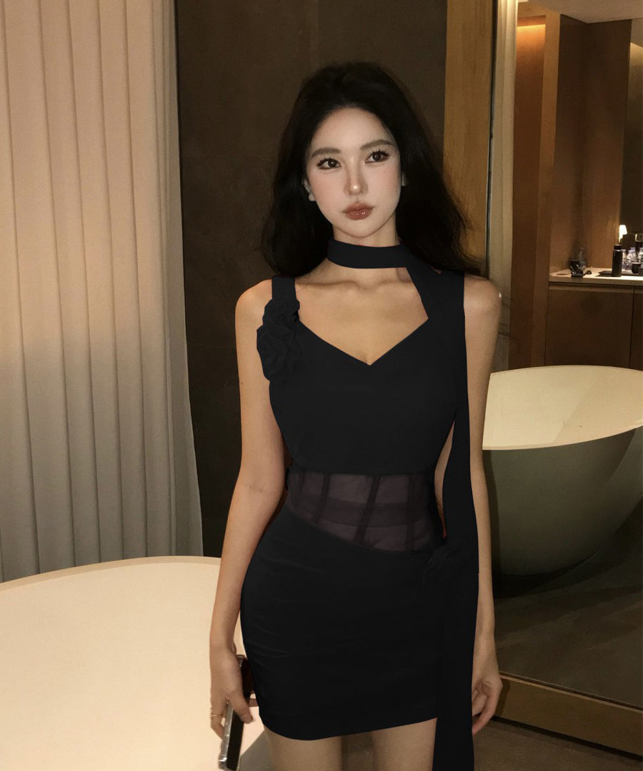 【2色】キャバドレス ミニドレス 透け感 フリル カワセクシー 谷間見せ party YH2-DD6467