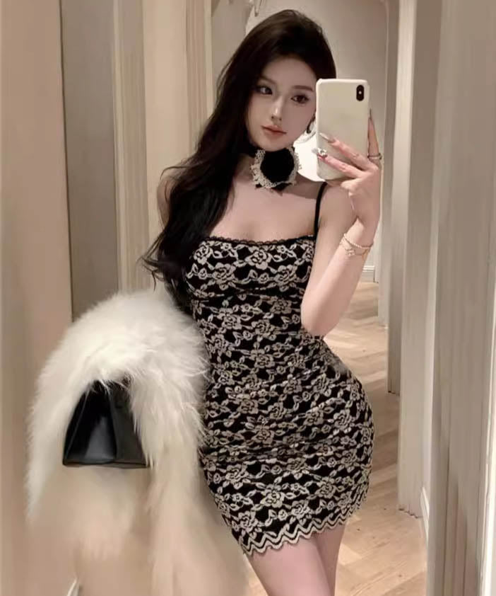 【2色】キャミワンピミニドレス花柄セクシー肌見せ着痩せレースナイトクラブ WQ2-SJHY10151