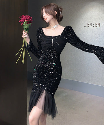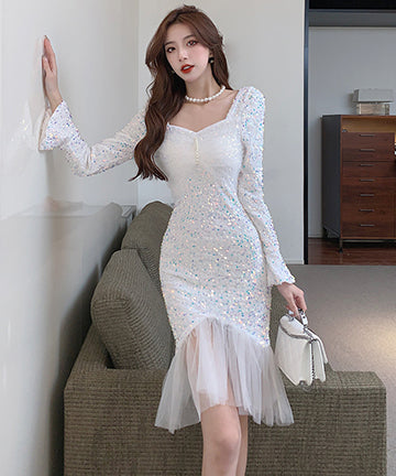 2色 キラキラ 膝丈ドレス チュール 高級感 二次会 披露宴 LT2-LQE5954GT528