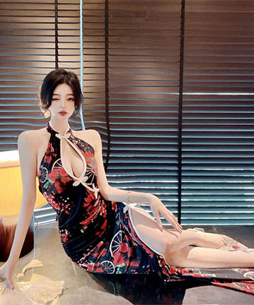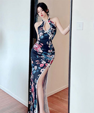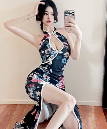 【2色】セクシー 花柄 谷間魅せ 指名 Chic チャイナ スリット 脚長効果 XH2-MLS7294