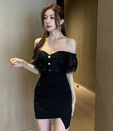 2色 チューブトップ レース キャバドレス ミニドレス 高見え セクシー 気質 LT2-YM8701