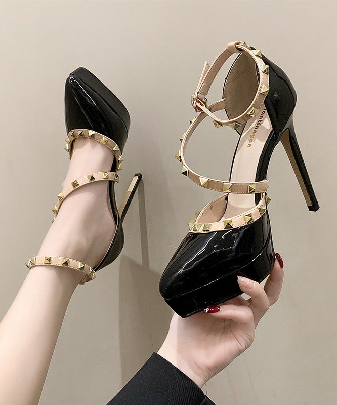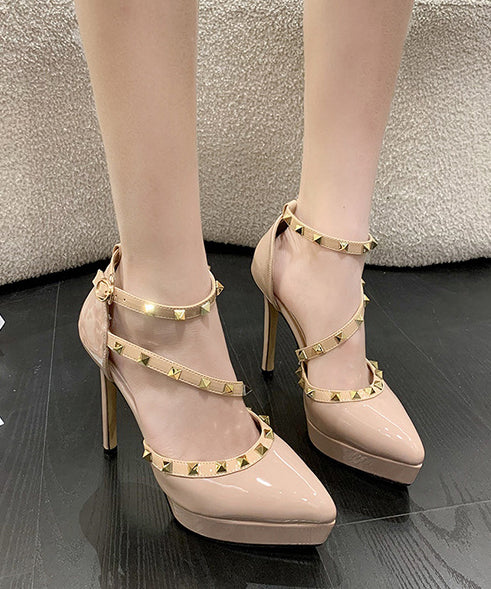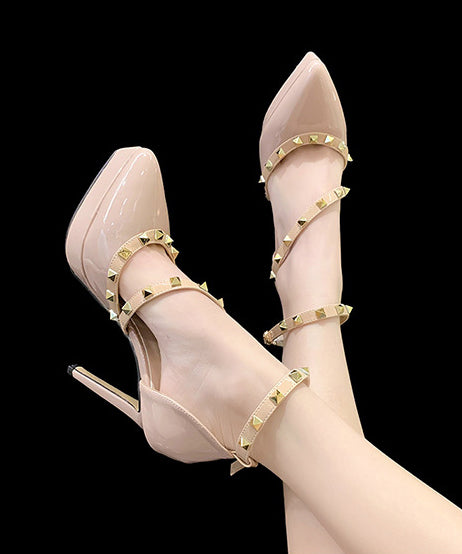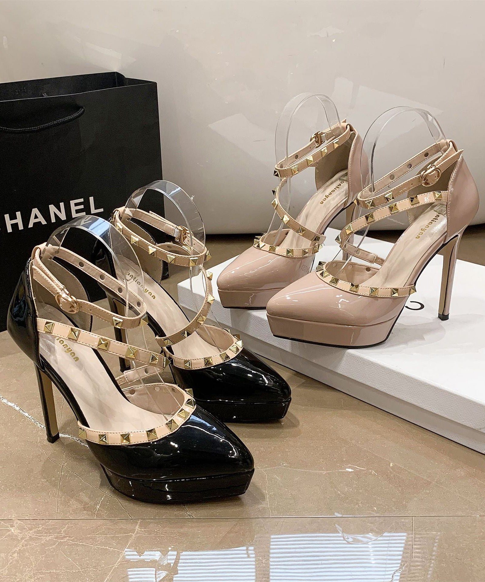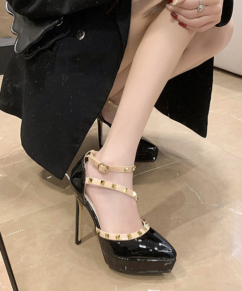 【2色】パンプス 痛くない ハイヒール ピンヒール 通勤用 エナメル パンプス リベット ハイヒール ポインテッドトゥ ヒール10cm エナメル パンプス ピンヒール 美脚パンプス 定番 フォーマル 結婚式 オフィス 大きいサイズ25.5cm XH5-DLHS6266-1