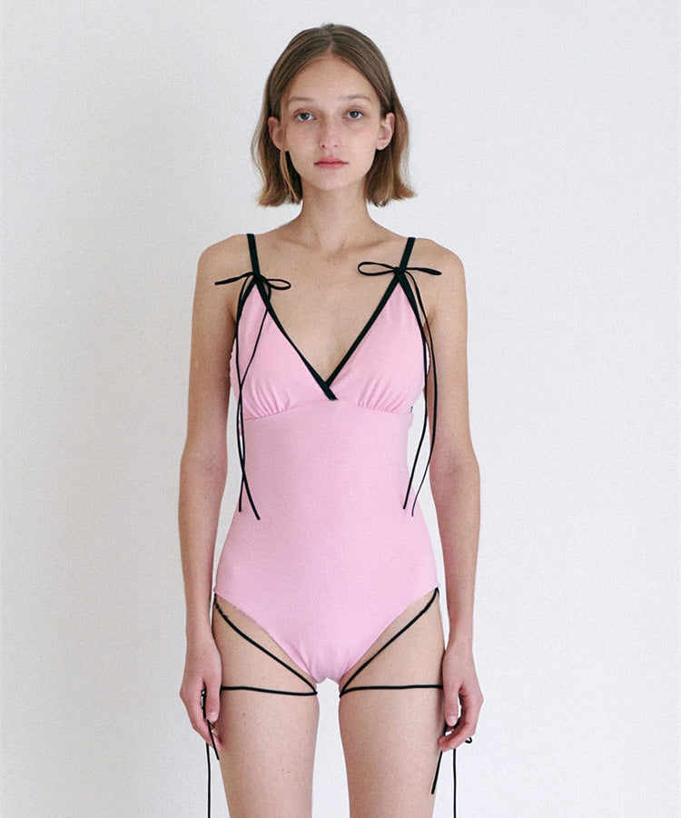 【2色】ビキニ水着モノキニ体型カバーリボン温泉大人可愛い海ビーチ旅行セクシー WQ7-BY3108